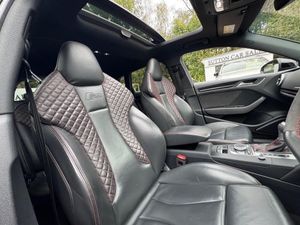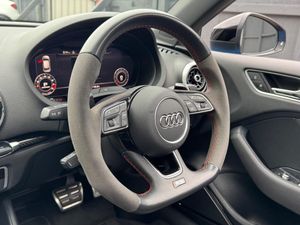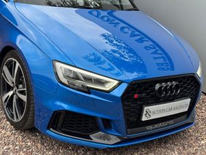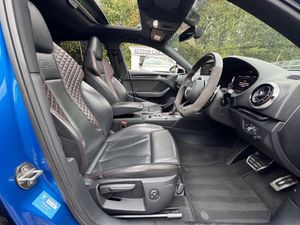 19in Alloy Wheels - 5-Arm Blade Design Audi Sport - Glossy Anthracite Black - Diamond Cut Finish, 6-Airbag System with Knee Airbag for Driver, Aluminium Interior Elements, Anti Theft Locking Wheel Bolts, Anti-Theft Alarm, Audi Beam, Audi Connect Infotainment Services (3 Month Subscription From New), Audi Drive Select, Audi Parking System Plus, Audi Phone Box with Wireless Charging, Audi Smartphone Interface, Audi Sound System, Audi Virtual Cockpit with RS Specific Display, Auto-Dimming Rear-View Mirror, Black Styling Package, Bluetooth Interface, Brake Calipers Painted in Black with RS Logo at the Front, Cruise Control, DAB Digital Radio, Door Mirrors - Black Housing, Door Mirrors - Electrically Adjustable and Heated with Integrated LED Side Indicators, Door Sill Trims - Inlays in Aluminium and Illuminated with RS3 Logo, Dual-Zone Electronic Climate Control, ESC - Electronic Stabilisation Control inc ABS - ASR and EDL, Electric Windows - Front, Email and Text Messages can be Displayed on your Vehicles MMI, First Aid Kit and Warning Triangle, Front Centre Armrest, Headlights Washers, Hill Hold Assist, ISOFIX Child Seat Mounting and Top Tether, Inlays - Carbon, Interior Light Package, LED Headlights with LED Rear Lights and Dynamic Rear Indicators, Light and Rain Sensor, MMI Navigation Plus with MMI Touch, Manual Seat Adjustment, Online Media Streaming, Panoramic Glass Sunroof, Pedals in Stainless Steel, Privacy Glass, Progressive Steering, RS Body Styling, RS Brake System, RS Flat Bottomed 3 Spoke Leather Multi-function Sport Steering Wheel with Alcantara Inserts and Gear Shift Paddles in Aluminium Look - Contrast Stitching and RS Badging, RS Gear Lever Knob in Alcantara with Leather Gaiter with Contrast Stitching, RS Sports Exhaust System, RS Sports Suspension, RS3 Badge on Grille and on Luggage Compartment Lid, Seat Belt Monitoring, Seats - Heated Front, Split Folding Rear Seat Bench - 60-40 or Fully, Storage Package, Tool Kit, Tyre Pressure Warning Light, Tyre Repair Kit, Driver Assistance Package, Matrix LED Exterior Lighting Pack, Ara Blue, Door Mirrors - Heated-Electrically Adjustable-Folding-Auto-Dimming, Comfort and Sound Package, Top Speed Restriction Increase to 174mph, Fine Nappa Leather - RS Embossed Super Sports Seats - Black with Crescendo Red Stitching