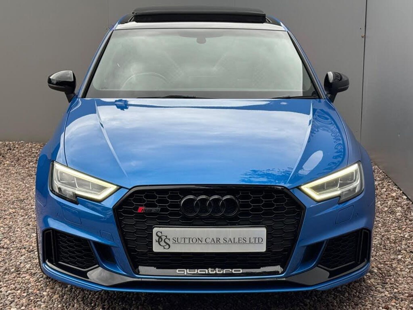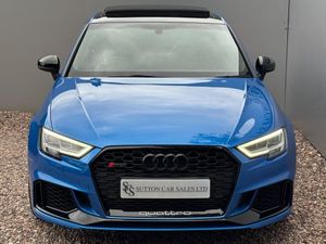 SUTTON CAR SALES ARE PROUD TO OFFER THIS STUNNING AUDI RS3 SPORT EDITION FINISHED IN ARA BLUE CRYSTAL EFFECT. THIS CAR COMES WITH A MASSIVE SPEC WHICH CONSISTS OF MRC STAGE 2 REMAP RUNNING 530 BHP, MILLTEK DOWN PIPES, DECATS AND MUCH MORE. OTHER EXTRAS INCLUDE PANORAMIC SUNROOF, AUDI SUPER SPORTS SEATS WITH RED STITCHING, COMFORT AND SOUND PACK, CARBON INLAYS. BANG & OLUFSEN SURROUND SOUND, KEYLESS ENRTY START & GO, REVERSE CAMERA, CRUISE CONTROL, HEATED SEATS, TOP SPEED INCREASE TO 174 MPH, DRIVER ASSISTANT PACKAGE AND MUCH MORE.THIS CAR HAS BEEN FULLY MAINTAINED AT AUDI REGARDLESS OF COST. HPI CLEAR.WE ARE BASED IN SUTTON COLDFIELD (BASSETTS POLE), VIEWING STRICTLY APPOINTMENT ONLY, ALL MAJOR CREDIT/DEBIT CARDS ACCEPTED, PART EXCHANGE WELCOME AT TRADE VALUE, DEPOSITS TAKEN OVER THE PHONE, SECURE ANY OF OUR VEHICLES WITH A SMALL DEPOSIT OF £500, NATIONWIDE DELIVERY AVAILABLE-MRC STAGE 2/PAN ROOF/530 BHP-12 MONTHS AA BREAK DOWN AND DRIVE AWAY INSURANCE AVAILABLE ON SELECTED MODELS