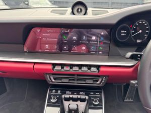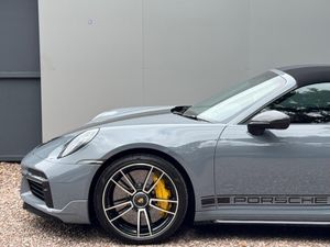 2 USB-C Ports in Centre Console Main Storage Compartment Lid - 12V Socket in Passenger Footwell, 20in Front 21in Rear Alloy Wheels - 911 Turbo S, Adaptive Sports Seats Plus - Electrical 18-Way with Memory Package, Ascending Centre Console with Storage Compartment, Auto-Deploying Roll-Over Protection System, Automatic Headlight Activation including Welcome Home Lighting, Automatically Dimming Mirrors with Integrated Rain Sensor, BOSE Surround Sound System, Black Fabric Roof Lining on Hood - A -Pillars in Leather, Clothes Hooks on Seat Backrests, Convertible Top Colour - Black, Cruise Control, Digital Display for Selected Gear in Rev Counter, Digital Radio, Door Handles and Accents in Light Silver Interior Decorative Finishers in Matt Carbon, Door Sill Guards in Brushed Aluminium with Model Designation, Driver Memory Package, Dual Auxiliary LED Light Units in Front Bumper with Position Lights, Direction Indicators and Side Indicators, EU eCall Emergency System, Electric Parking Brake, Electrically Folding Exterior Mirrors, Electrically Operated Rear Side Windows, Electrically Operated, Fully Automatic Fabric Roof, Electromechanical Power Steering with Variable Steering Ratio and Steering Pulse Generator, Embossed Leather on Front Seat Centres - Front Side Bolsters - Front Seat Head Restraints, Engine Compartment Cover Grille with Vertical Slats in Silver Colour - High-Gloss, Engine Immobiliser, Exterior Mirror Lower Trim in Exterior Colour, Exterior Mirrors on Door Waist Rails - Electrically Adjustable and Heatable - Aspherical on Drivers Side, Floor Mats, Forged Alloy Wheels with Central Locking in Two-Tone Look - Wheel Hub Cover with Coloured Porsche Crest, Full-Size Airbags for Driver and Front Passenger, GT Sport Steering Wheel in Leather - Heated, Glove Compartment - Lockable and Storage Compartment in Each Door, Green Tinted Thermally Insulated Glass, Heated Rear Screen, ISOFIX Child Seat Mounting Points on Front Passenger Seat, Illuminated Vanity Mirrors in Sun Visors - Driver and Passenger Sides, Instrument Cluster with Central Analogue Rev Counter - Two 7in TFT Display, Integral Electrically Powered Wind Deflector, Intelligent Lightweight Construction in Aluminium-Steel-Composite Construction, Interior LED Lighting - Reading Lights - Orientation - Ignition Lock - Luggage Compartment - Footwell - Glove Compartment and Door Lighting, Keyless Go, LED Matrix Headlights including Porsche Dynamic Light System Plus, Luggage Compartment - Front, McPherson-Strut Suspension with Anti-Roll Bar at Front, Model Designation on Rear Trim in Light Silver, Multi-Link Suspension with Anti-Roll Bar at Rear, PASM - Porsche Active Suspension Management, PCCB - Porsche Ceramic Composite Brakes - Calipers with Yellow Finish, PCM - Porsche Communication Management - Include Navigation, PDCC - Porsche Dynamic Chassis Control, PDK Gear Selector with Automatic Mode - Manual Gear Selection via Shift Paddles on the Steering Wheel, PORSCHE Lettering Integrated in Taillight Strip, PTM - Porsche Traction Management, PTV Plus - Porsche Torque Vectoring Plus, PVTS - Porsche Vehicle Tracking System, ParkAssist - Front and Rear with Reversing Camera, Particle-Pollen Filter with Active Carbon Filter, Porsche Active Aerodynamics - PAA with Active Front Spoiler Active Cooling Air Intake Flaps and Active Rear Wing, Porsche Connect Online Navigation, Porsche Side Impact Protection - POSIP, Porsche Stability Management - PSM Including ABS with Extended Brake Functions, Porsche Track Precision App, Porsche WET Mode, Power Windows with One-Touch Operation and Door Seal Protection Function, Rear Apron and Rear Apron Lower Section with Integrated Tailpipe trims and Intercooler, Rear Axle Steering, Rear Side Panel Air Intakes for the Engine, Remote Control for Central Locking and Luggage Compartment Lid Release, Retractable Door Handles, Seats - Heated Front, Seats - Split-Folding Rear, Side Air Intakes at the Front with Active Cooling Air Flaps and Air Blades in Bl