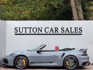 SUTTON CAR SALES ARE PROUD TO OFFER THIS STUNNING PORSCHE 992 TURBO S CABRIOLET FINISHED IN ARCTIC GREY. THIS CAR COMES WITH A MASSIVE SPEC WHICH CONSITS OF AERO SPORTS KIT (LARGER FRONT SPLITTER, SIDE SKIRTS, REAR WING ALL CURVED FOR BETTER AERODYNAMICS),ADAPTIVE CRUISE CONTROL, 20'' TURBO ALLOY WHEELS, BOSE SURROUND SOUND, FRONT AXEL LIFT, FRONT SPLITTER LIFT, KEY PAINED IN EXTERIOR COLOUR, BORDEUX RED AND BLACK CONTRAST INTERIOR, REVERSE CAMERA WITH 360 VIEW, SPORTS EXHAUST WITH BLACK TIPS, LANE ASSIST, CARBON WING MIRRORS, PORSCHE DECALS ON THE BONNET AND ROOF, SPORTS CHRONO PACK, HEATED STEERING WHEEL, CARBON DOOR SILLS, PORSCHE CREST EMBOSSED ON HEAD RESTS, GLOSS BLACK AIR DUCTS, WIRLESS APPLE CAR PLAY, ANDROID AUTO, PORSCHE CERAMIC BRAKES WITH YELLOW BRAKE CALIPERS AND MUCH MORE.THIS CAR COMES WITH JUST 1 FORMER KEEPER FROM NEW AND FULL PORSCHE SERVICE HISTORY. PORSCHE WARRANTY EXPIRES ON THE 01/07/2028. SUPPLIED WITH 2 KEYS. HPI CLEAR.WE ARE BASED IN SUTTON COLDFIELD (BASSETTS POLE), VIEWING STRICTLY APPOINTMENT ONLY, ALL MAJOR CREDIT/DEBIT CARDS ACCEPTED, PART EXCHANGE WELCOME AT TRADE VALUE, DEPOSITS TAKEN OVER THE PHONE, SECURE ANY OF OUR VEHICLES WITH A SMALL DEPOSIT OF £500, NATIONWIDE DELIVERY AVAILABLE-AERO KIT/OPC WARRANTY 07/28-12 MONTHS AA BREAK DOWN AND DRIVE AWAY INSURANCE AVAILABLE ON SELECTED MODELS