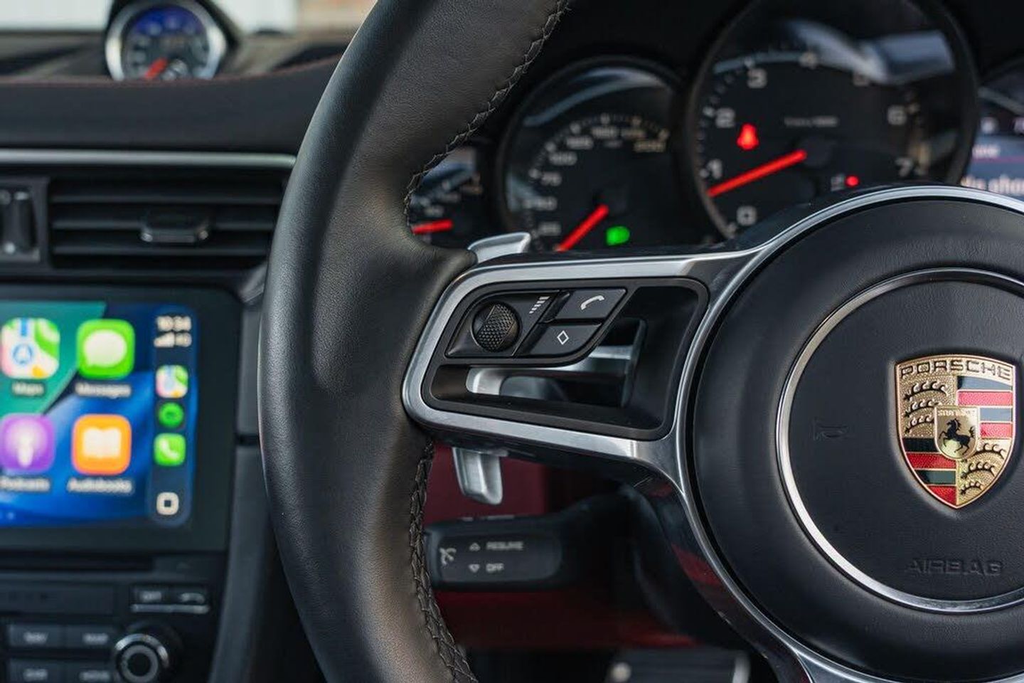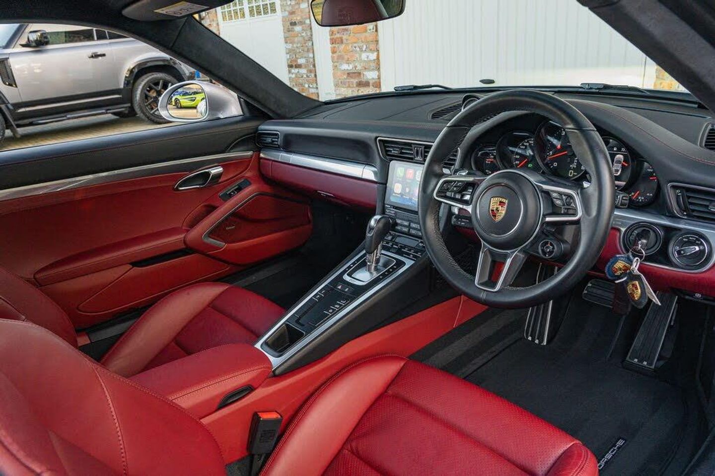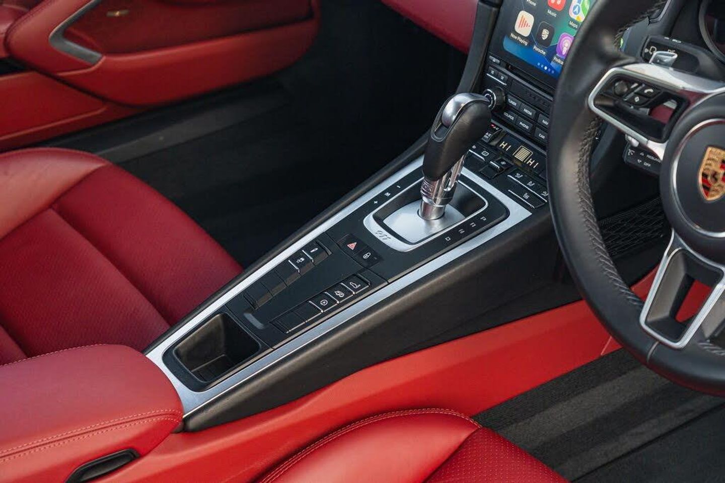 Apple CarPlay, Digital Radio - DAB - DAB+DMB, PCM - Porsche Communication Management - Include Navigation, Automatic Headlight Activation including Welcome Home Lighting, Seats - Heated Front, Sports Seats - 4-Way Electric, Two-Zone Automatic Climate Control, PASM - Porsche Active Suspension Management, Headlights - LED in Black inc PDLS Porsche Dynamic Lighting System Plus, Sports Exhaust System, Sport Chrono Package including Mode Switch, 20in Alloy Wheels - Carrera S, BOSE Surround Sound System, Park Assist - Front and Rear, Leather Two-Tone - Black - Bordeaux Red, Automatically Dimming Mirrors with Integrated Rain Sensor, Privacy Glass - Rear Side Windows and Rear Window, SportDesign Package, Heated Multifunction Steering Wheel, Cruise Control, Porsche Crest on Head Restraints