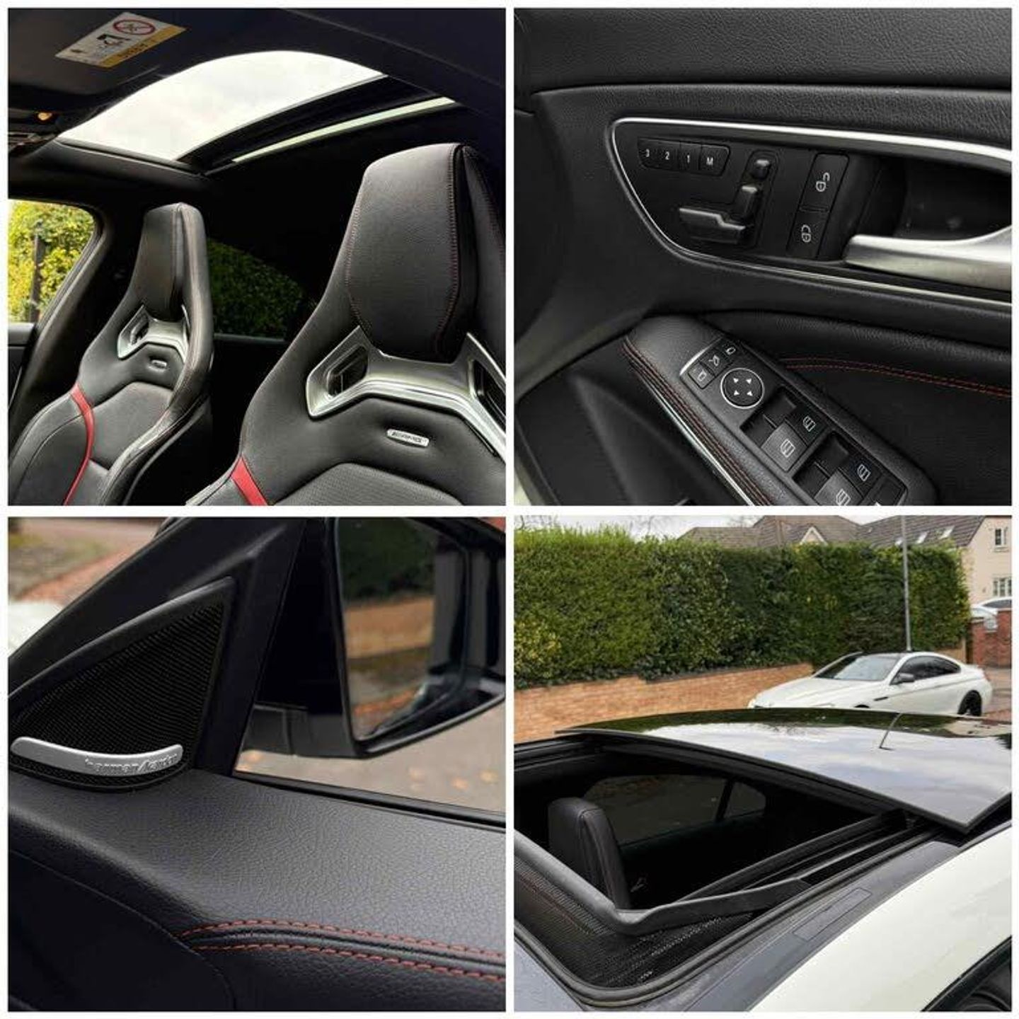 Sliding Panroof, Heated Seats, Leather AMG Bucket Seats, 11 Speakers Harmon Kardon, AMG Sports Valved Exhaust, Reverse Camera, Aero Pack, Memory Seats, AMG Exclusive pack with lumbar support, AMG Multi Spoke Wheels, Distronic Cruise Control, DAB, Bluetooth, Privacy Glass and lots more.