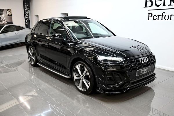 We are pleased to present this stunning Q5 Vorsprung finished in Mythos Black Metallic with Black Leather interior. This particular example benefits from a full main dealer Audi Service History and an exterior Maxton Design Styling kit finished in high gloss Black. With this vehicle being the Vorsprung model, it comes loaded with features including:Glass Panoramic SunroofBang & Olufsen Sound systemHead up displayHeated front and rear seatsFront Massage SeatsAdaptive Cruise ControlAdaptive Air suspensionFront and Rear Parking sensors with surround camerasApple/Android car play and much more.6 Months Rac Platinum Plus Warranty with option to extend. Finance available from 7.9%apr subject to statusAll viewings by appointment onlyVisit www.berkeleyperofrmance.co.uk for further details and similar vehicles.-Panroof+B&O+Massage seats