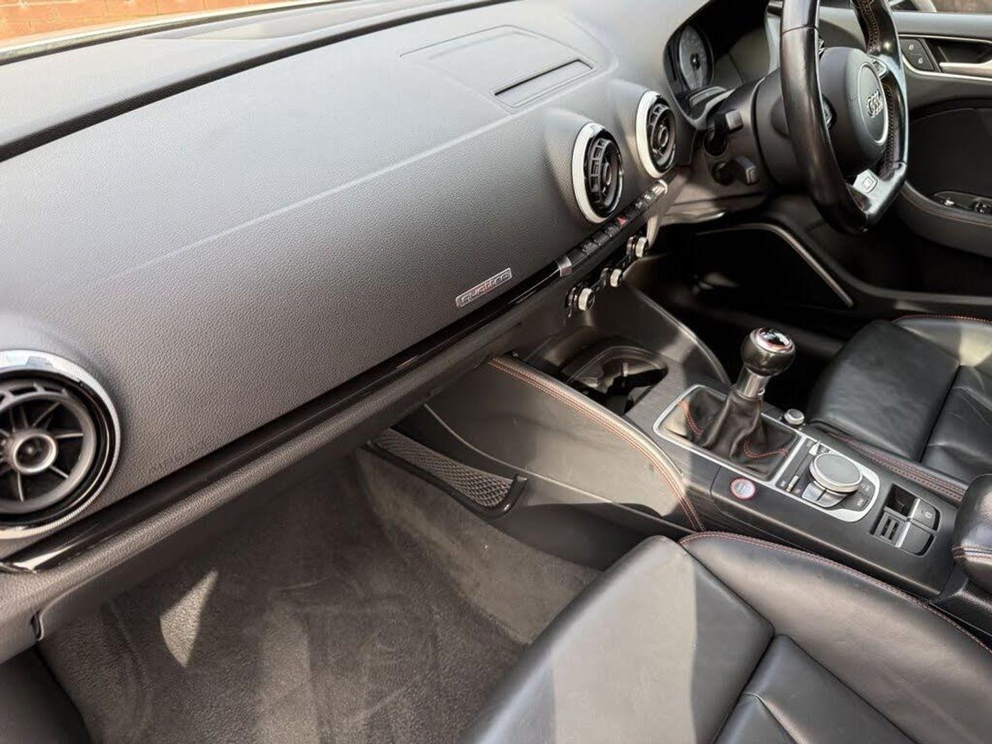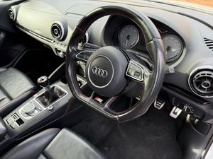 Audi Parking System Plus, Panoramic Glass Sunroof, 12V Power Socket - Centre Console, 12V Power Socket - Luggage Compartment, 12V Power Socket - Rear, 19in Alloy Wheels - 5-Twin-Spoke Star Design Anthracite Partly Polished, 2 x SDXC Card Readers, 50 Station Memory with Dynamic Station List, 7-Digit Postcode Recognition, ABS - Anti-Lock Braking System, AMI - Audi Music Interface, ASR - Anti Slip Regulation, Adaptive Brake Lights, Air Vent Sleeves - Aluminium Look, Airbags - Driver, Airbags - Drivers Knee, Airbags - Front Passenger, Airbags - Front Side, Airbags - Head Level Side For Front and Rear, Alarm - Thatcham Category 1, Aluminium Interior Elements, Aluminium-Effect Door Mirror Housings, Anti Theft Locking Wheel Bolts, Audi Drive Select, Audi Magnetic Ride, Audio Output - 80 Watts, Bluetooth Audio Streaming, Brake Calipers - Black with S3 Logo, Brake Lights - LED, Car Jack, Child Locks - Manual, Chrome-Plated Exhaust Tailpipe Trim, Cloth Headlining in Black, Coat Hooks - B Pillar - Both Sides, Colour Drivers Information System - DIS, Cup Holders - x2 in Centre Console, DAB Digital Radio, Display Screen Colour - 5.8in, Door Mirrors - Electrically Adjustable and Heated, Door Sill Trims, Door Sill Trims - Aluminium with S3 Logo, Dual-Zone Electronic Climate Control, Dynamic Route Guidance, EBD - Electronic Brakeforce Distribution, EDL - Electronic Differential Lock, ESC - Electronic Stabilisation Control, Efficiency Program in the Drivers Information System - DIS, Electric Windows - Front and Rear, Electromechanical Parking Brake, Electromechanical Power Steering, European Navigation Data, Exhaust Tailpipe - Twin, FM-AM Radio, First Aid Kit, Fog Lights - High Gloss Black Surrounds, Front Centre Armrest, Front Fog Lights, Front Passenger Airbag Deactivation Switch, Front Sports Seats, Front and Rear Floor Mats, Gear Knob - Perforated Leather, Gear Knob - Silver Stitching, Glovebox - Illuminated, Headlights - Automatic Dynamic Range Control, Headlights Washers, Heated Front Seats, Heated Windscreen Washer Jets, High Mounted Third Brake Light, High-Visibility Jackets x2, Hydraulic Brake Assist, ISOFIX Child Seat Mounting for Front Passenger and Rear Outer Seats, Illuminated Vanity Mirrors, Immobiliser, Inlays - Matt Brushed Aluminium, Instrument Dials in Grey with White Needles and Aluminium Look Needle Hub, Interior Elements - Air Vents - Aluminium, Interior Elements - Coin Box - Aluminium, Interior Elements - Frame Around the Inside Door Handle - Aluminium, Interior Elements - Glove Compartment - Aluminium, Interior Elements - Window Control Switches - Aluminium, Interior Lighting, LED Daytime Running Lights, LED Rear Indicators, LED Rear Lights, Luggage Compartment - Lashing Points x4, Luggage Compartment - Side Net, MMI Control Panel, MMI Radio, Mobile Telephone Preparation - Bluetooth Interface, Model and Engine Technology Badges at Rear, Pedals - Brushed Stainless Steel, Pollen Filter, Progressive Steering, Radiator Grille - Honeycomb Design, Rear Diffuser with Double Chrome Bar at Top, Remote Central Locking with 2 Fold Away Keys, Rest Recommendation System, S Line Body Styling, S logos on the MMI and DIS, S3 Front Bumper, Satellite Navigation System - SD Card Based, Seat Belt Reminder for All Seats, Seats - Adjustment for Cushion Angle, Seats - Extendable Thigh Support, Seats - Front Height Adjustment, Seats - Split Folding Rear - 60-40, Secondary Collision Brake Assist, Smoking Package, Space Saver Spare Wheel, Speakers x8, Speed-Dependant Volume Control, Spoiler - S3 Design, Steering Wheel - 3-Spoke Leather-Multifunction-Flat Bottomed S3, Steering Wheel - Contrast Stitching, Steering Wheel - Height and Reach Adjustable, Steering Wheel - Multi-function, Storage Compartment Under Rear Seat, Storage Compartments in the Door Side Trims-Centre Console-Under Front Passenger Seat, Storage Net in Front Passenger Footwell and Front Seat Backrests, Storage and Luggage Package, Sun Visors - with Covered Vanity Mirrors, Suspension - S Sports - Dynamic Spring-Damper Settings and Lowered by 25mm, TP Memo - Automatically Saves Traffic News, Tool Kit, Traction Control, Tyre Pressure Monitoring System, Voice Control - Navigation, Voice Control - Telephone, Warning Triangle, Washer Fluid Level Indicator, Window Surrounds - Aluminium, Xenon Plus Headlights
