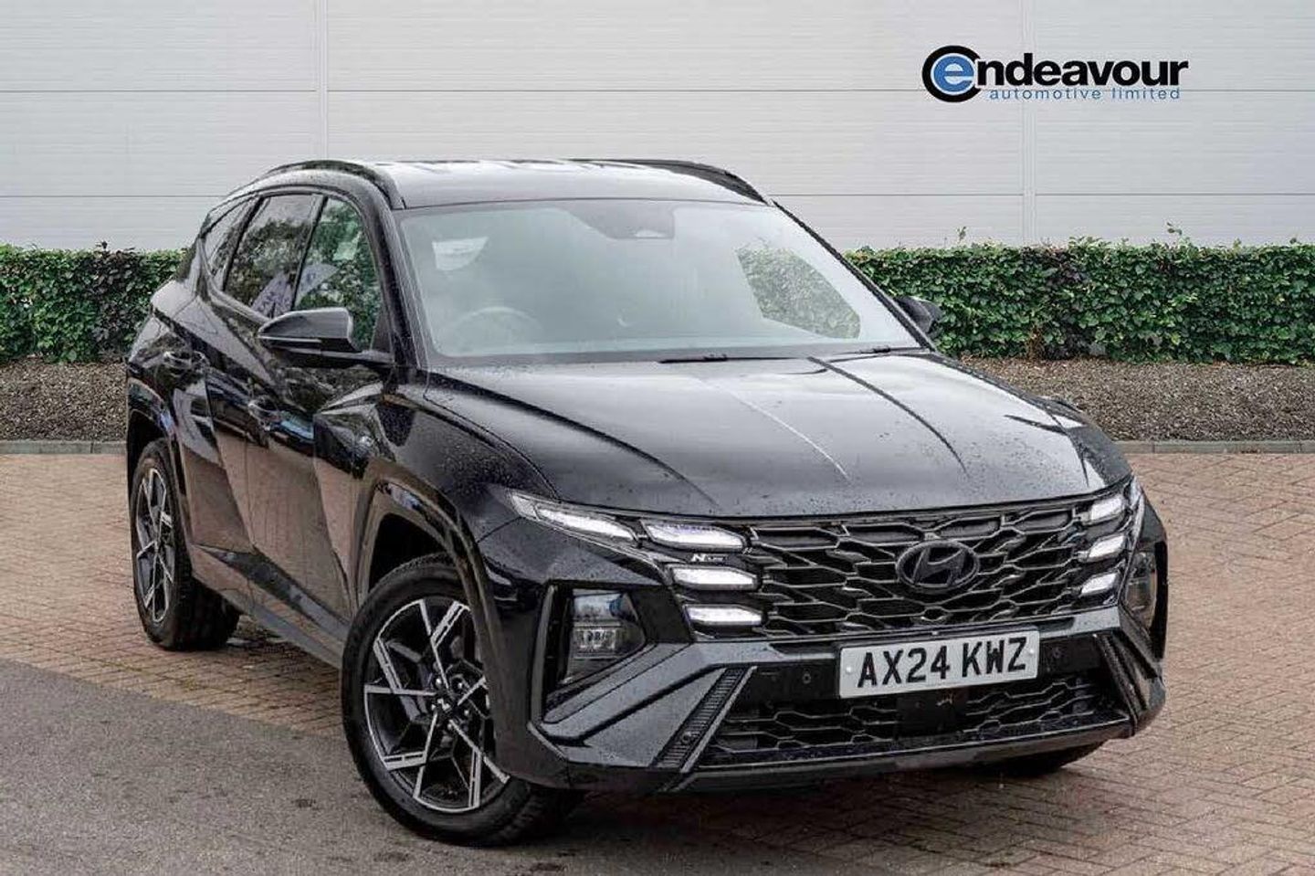 Exterior Features, Metallic paint, Paint - Pearlescent, Pearl - Abyss black, Trim - Part Leather, N Line leather/faux textile suede - Black with red stitching, Exterior Features, Adjustable intermittent front windscreen wipers with aero wiper blade, Automatic defog system, Automatic windscreen wipers with rain sensor, Front and rear electric windows with anti-trap mechanism and one touch control, Privacy glass - Rear windows and tailgate, Rear wash/wipe with intermittent wipe setting, Tinted glass with windscreen shade band, Body colour bumpers, Body colour exterior door handles, Body coloured wheel arches, Glossy black bumper mouldings, Rear side wing doors, Roof rails, Soft touch rear door paneling, Automatic headlights with dusk sensor, Follow me home headlights, Front fog lights, LED 3rd brake light, LED daytime running lights, LED Headlights, LED rear lights, Positioning Lights - LED, Safety, Anti-lock brake system (ABS), Brake assist function, Downhill brake control, Electric parking brake, Electronic stability control, Hill start assist control (HAC), Multi-Collision braking, Traction control, Vehicle stability management, Cruise control - smart adaptive speed control with stop and go function, Drive mode selector, Driver attention warning, Emergency stop signalling system, Forward Collision Avoidance Assist (FCA) - Car, Pedestrian and Cycle, Forward Collision Avoidance Assist Junction Turning (FCAJX), Front and rear parking sensors, Highway Driving Assist (HDA), Intelligent speed limit assist, Lane follow assist, Lane keep assist, PAS, Rear camera and guidance parking system, Auto dimming rear view mirror, Body colour door mirrors with integrated indicators, Electrically adjustable, heated and power folding door mirrors, 3x3 point rear seatbelts, Active bonnet, Airbag - Front, front side, curtain and centre front airbags, Childproof rear door locks, Curtain airbag roll over sensor, Front and rear seatbelt reminder, Front passenger airbag deactivation switch, Front seatbelt pretensioners, Outer rear seatbelt height adjustment, Seatbelt height adjustment for front seats, Tyre pressure monitoring system with individual tyre pressure display - TPMS, Audio / Communications, Bluetooth system, E-call, Voice recognition, Wireless Apple CarPlay/Android Auto, Wireless phone charging pad, 2 front and 2 rear speakers with 2 tweeters, 2 front and 2 rear USB-C ports, DAB Digital radio, Steering wheel mounted audio/phone controls, Driver Convenience, Hyundai road side assistance, Smart power tailgate, Miscellaneous, 12.3" LCD display with driver's supervision instrument cluster, 12.3" widescreen navigation with bluelink and mapcare, Digital clock, Over the air updates(OTA), Rev counter, Tailgate open warning light, Trip computer, Trip odometer, Water temperature gauge, Windscreen washer fluid sensor and warning indicator, Interior Features, Dual zone climate control, Touch sensitive climate controls with temperature dials, 12V power outlets in front console and luggage compartment, Cupholders in rear armrest, Front and rear door pockets, Front armrest with storage box, Front centre console and door bottle holders, Heated steering wheel, Height/reach adjustable steering column, Illuminated/air conditioned glove compartment, Leather wrapped steering wheel and gear knob, Luggage cover, Luggage hooks, Luggage net, Metal pedals, N Line Leather/faux textile suede upholstery, Rear side window sunblind, Retractable load cover, Sunglasses holder, TUCSON branded metal door scuff plate, Underfloor boot compartment, 64 colours interior ambient lighting, Door courtesy lights, LED interior lighting, Luggage compartment lighting, Map and reading lights, Driver and passenger sunvisors with illuminated LED vanity mirrors, Packs, N Line design package - Tucson, N Line interior design package - Tucson, Trailer wiring package - Tucson, Trim, 3 seat bench in 2nd row, 40/20/40 split folding rear seat, Adjustable head restraints (Up and down), Driver's seat manual height adjust, Heated front seats, ISOFIX child seat anchorage points attached on outer rear seats, Manual height adjustable front passenger seat, Rear seat remote folding function, Reclining rear seats, Single front passenger seat, Security, Deadlocks, Immobiliser, Locking wheel nuts, Remote control central locking, Smart key with keyless entry and engine start/stop button, Speed sensitive auto door locking, Thatcham category 1 alarm, Towing, Trailer stability assist, Wheels, 19" Alloy wheels, Tyre repair kit