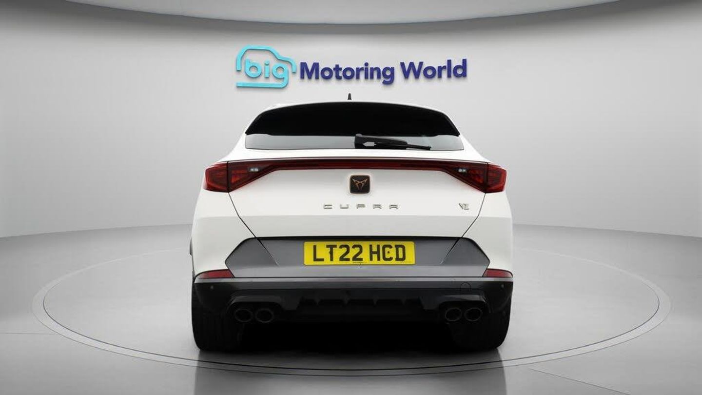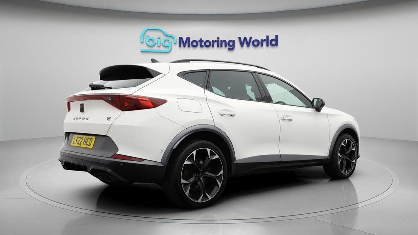 Dynamic Chassis Control,19'' Al-Our CUPRA Formentor is finished in White. Specification includes a range of fantastic features including Dynamic Chassis Control, 19'' Alloy wheels, Adaptive Cruise Control, Digital Cockpit, Lane Assist, Privacy Glass, Gesture Control, Rear View Camera, Internet, Bluetooth Specification information is supplied by CAPHPI and may vary to the actual car. This data does not form any part of a buying contact. Please check specification prior to purchase in-store. The MOT is valid until May 2026, visit bigmotoringworld.co.uk for more photos, a 360 tour, service history and a free HPI report.Were BIG on peace of mind and this White CUPRA Formentor has completed our comprehensive 200 point inspection and passed all checks. Its ready for you to drive away with immediate collection in-store. We include a 90-day warranty as standard plus an option to extend for up to 3 years.Reserve this car exclusively for you, safely and securely at bigmotoringworld.co.uk, with a fully refundable £99 deposit. Test drive before you buy, with no commitment, no hassle and a completely haggle free experience. Still searching and want to see thousands more cars? We are BIG on choice with over 8000 cars to choose from.Visit our award winning web site bigmotoringworld.co.uk.Were Big Motoring World and were BIG on what matters to you.