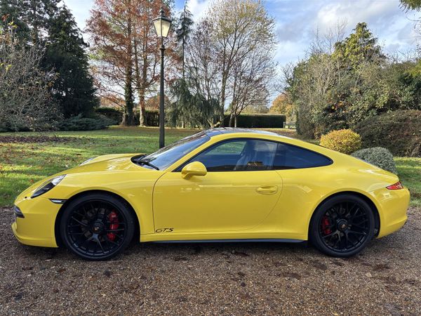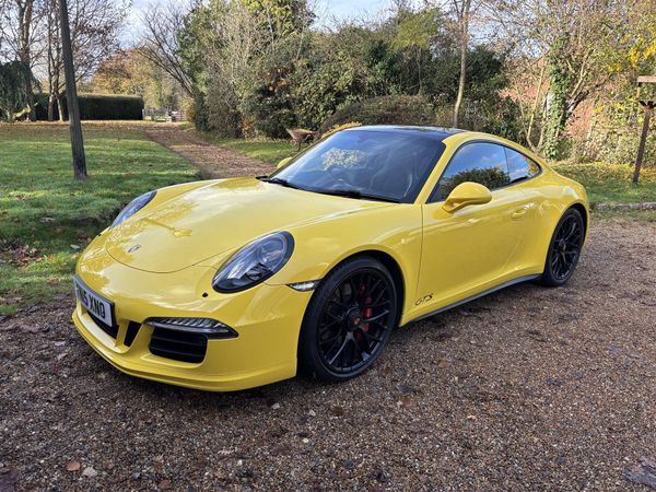 Porsche 991.1 GTS first registered by Porsche Sheffield March 2015 in unusual Racing Yellow with GTS interior pack and silver stitching.