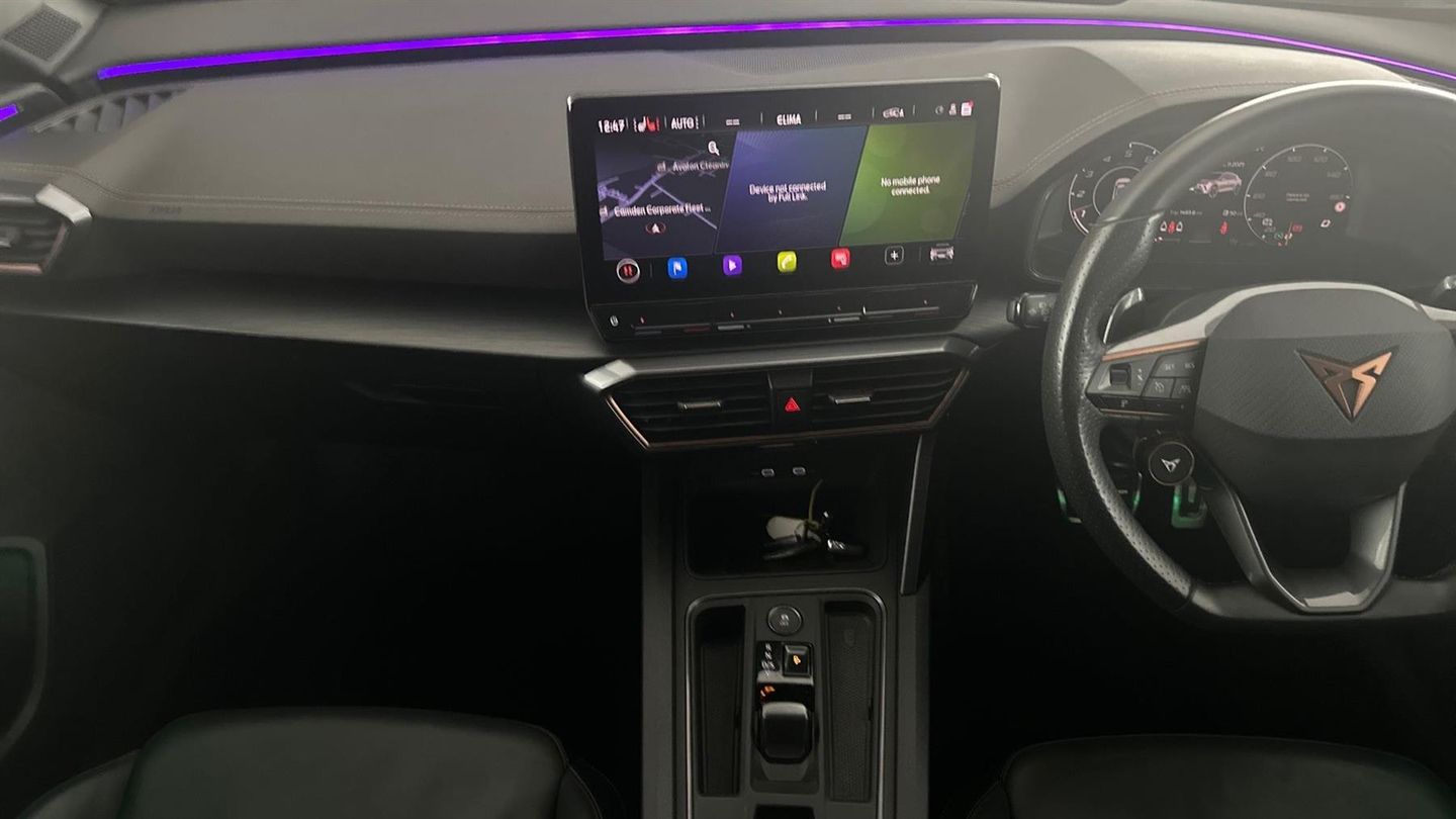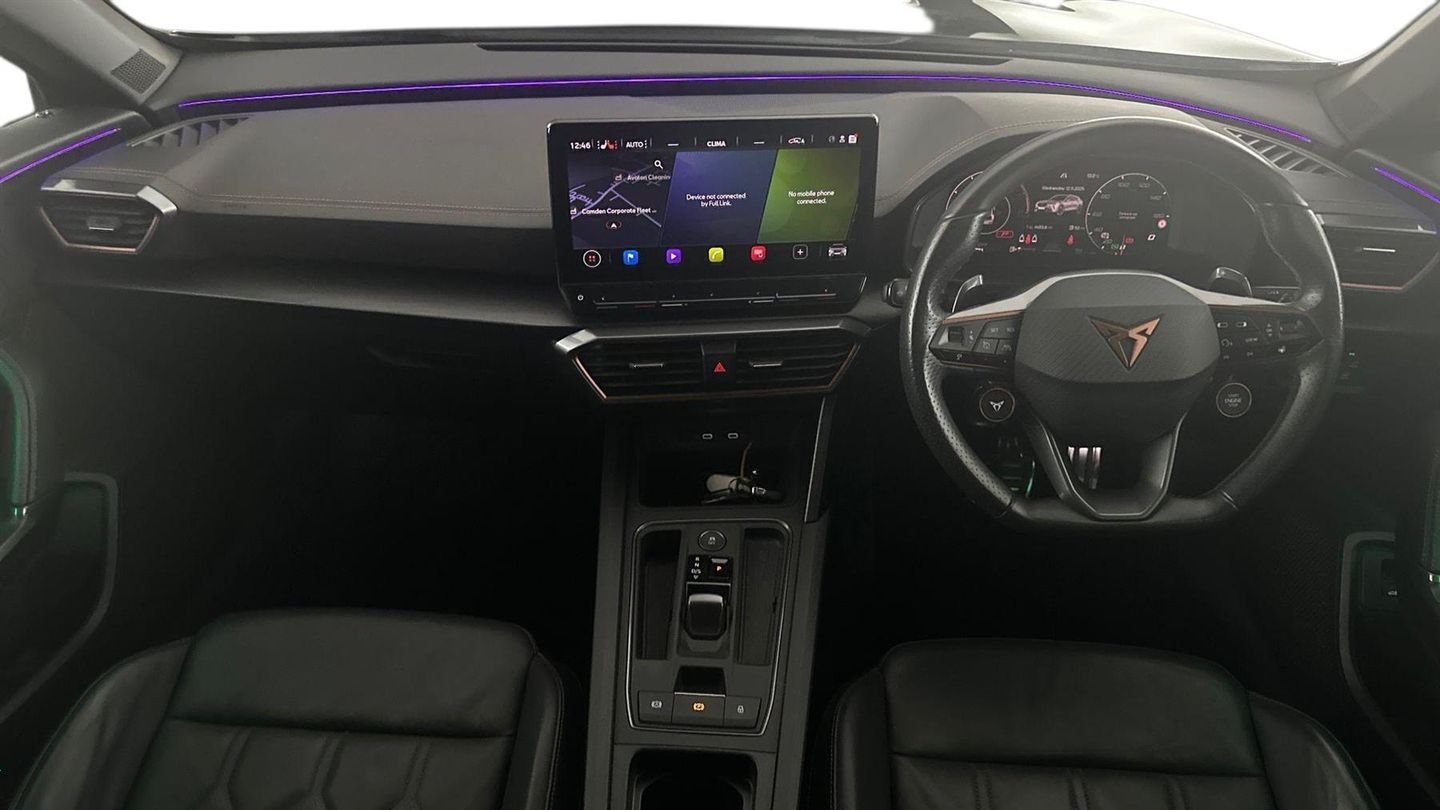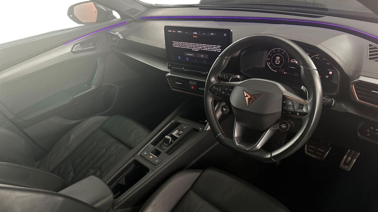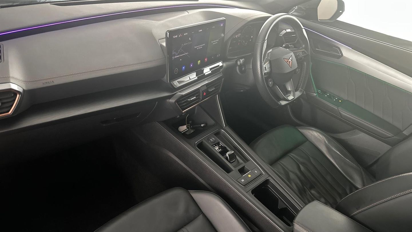Reserve Online,Navigation system with 12'' Touchscreen Display,Park assist (inc front/rear parking sensors),Rear view camera,Predictive adaptive cruise control with speed limiter,Virtual pedal and electric tailgate,Wireless apple carplay,Wireless phone charger,Electrically adjustable heated and folding door mirrors,Leather heated multi-function sports steering wheel,19" 'Exclusive' machined sport matte black & silver alloy,Sytner Select Vehicle,Dealer Finance Facility Available,Balance of CUPRA warranty