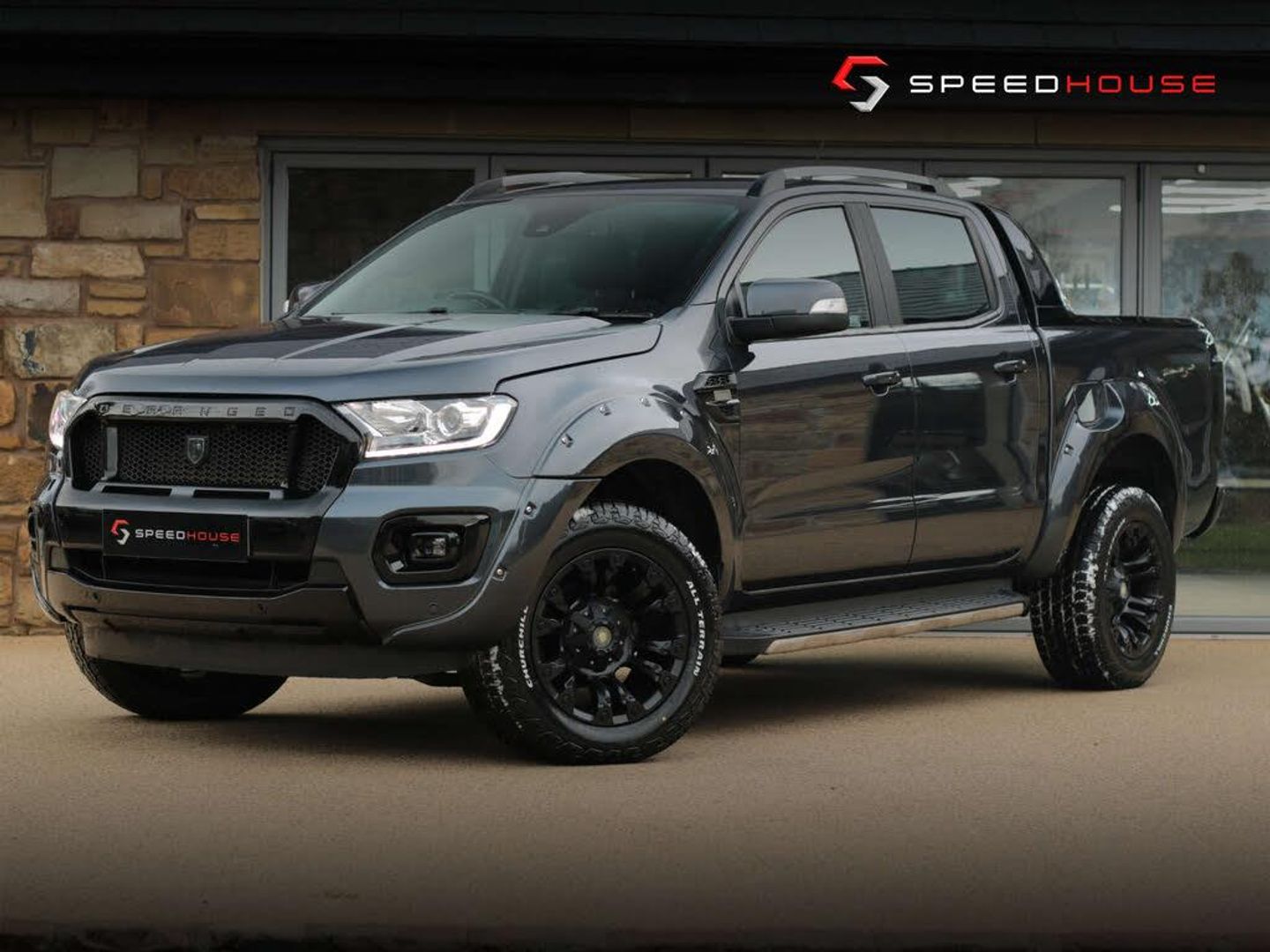 Equipped with the Deranged Blackout Edition Body kit, Trailer Tow Pack, and Lockable Tonneau Cover, this Ford Ranger is not just a vehicle, but a versatile companion for all your adventures. The Load Box Bedliner ensures that your gear stays organized and secure, while the Wide-track arch extensions and 20-inch satin black wheels with Churchill All Terrains make a bold statement on the road.