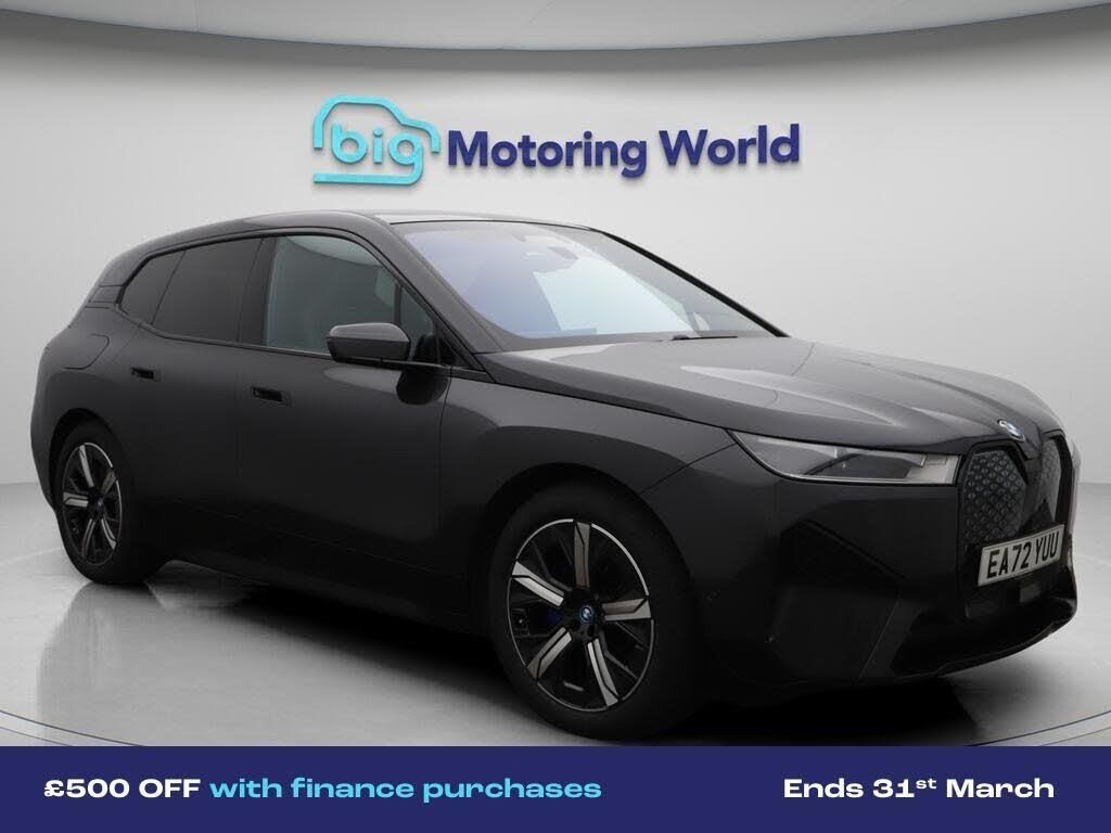 £500 towards your finance depo-Our BMW iX comes with optional extras worth £795. Specification includes a range of fantastic features including £500 towards your finance deposit, Panoramic Roof, All Wheel Drive, Sun Protection Pack, Head up Display, Leather Seats, Apple CarPlay, Electric Seats, Harman Kardon Speakers, Connected Package Professional Specification information is supplied by CAPHPI and may vary to the actual car. This data does not form any part of a buying contact. Please check specification prior to purchase in-store. The MOT is valid until November 2026, visit bigmotoringworld.co.uk for more photos, a 360 tour, service history and a free HPI report.Were BIG on peace of mind and this Grey BMW iX has completed our comprehensive 200 point inspection and passed all checks. Its ready for you to drive away with immediate collection in-store. We include a 90-day warranty as standard plus an option to extend for up to 3 years.Reserve this car exclusively for you, safely and securely at bigmotoringworld.co.uk, with a fully refundable £99 deposit. Test drive before you buy, with no commitment, no hassle and a completely haggle free experience. Still searching and want to see thousands more cars? We are BIG on choice with over 8000 cars to choose from.Visit our award winning web site bigmotoringworld.co.uk.Were Big Motoring World and were BIG on what matters to you.