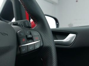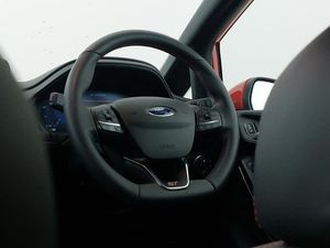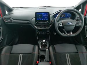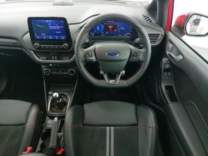 Launch control, Cruise control with adjustable speed limiter and intelligent speed assist, Ford easy fuel, Ford SYNC 3 Nav with DAB radio, 8" touch screen, voice control, emergency assist, Apple CarPlay/Android auto, 2x USB, 6 speaker, Ford pass connect, Rear parking distance sensors, Rear view camera, Selectable drive modes (Normal, Sport, Track), Speed sign recognition, Traffic sign recognition, Quaife limited slip differential, Unique ST suspension, Auto high beam, LED Night signature to rear lights, LED third brake light, Matrix LED headlights with signature LED daytime running lights and integrated sequential indicator, Quickclear heated windscreen, Rain sensing wipers and auto dimming rear view mirror, Unique ST front grille and bumper, ST rear bumper with diffusor, Unique ST rear bumper with diffuser, Dual chrome exhaust tailpipe, Ford performance sports seats, Unique ST soft feel gearknob, NCAP Pack - Fiesta, Ford keyfree system with Keyless entry and keyless start, Thatcham alarm with power door dead locks, 18" 5 spoke alloys with magnetite finish