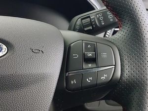Full Service History, Dual zone electronic air temperature control, 17" 5 spoke Rock mettalic finish alloy wheels with mini spare wheel, Ford SYNC 4 Navigation with 13.2'' touchscreen, DAB radio, Emergency Assistance, Apple Carplay & Android Auto, 6 speakers & FordPass Connect, Keyless entry and keyless start, Lane keeping system - lane keeping alert and lane keeping aid, Bluetooth system, 4.2" Colour TFT Ice blue illumination analogue cluster with trip computer, Eco mode, Sports tuned suspension, 2 USB ports, Electrically operated heated power fold door mirrors with puddle lamp with side indicators, Electrically operated front and rear windows with one touch opening and closing, Auto headlamps (on/off), LED daytime running lamp, Quickclear heated windscreen, Unique ST-Line grille, full bodystyling kit, and large body coloured rear roof spoiler, Privacy glass, Rain sensor, Isofix child seat preparation, Passenger airbag deactivate switch, Remote central locking & engine immobiliser, MyKey system