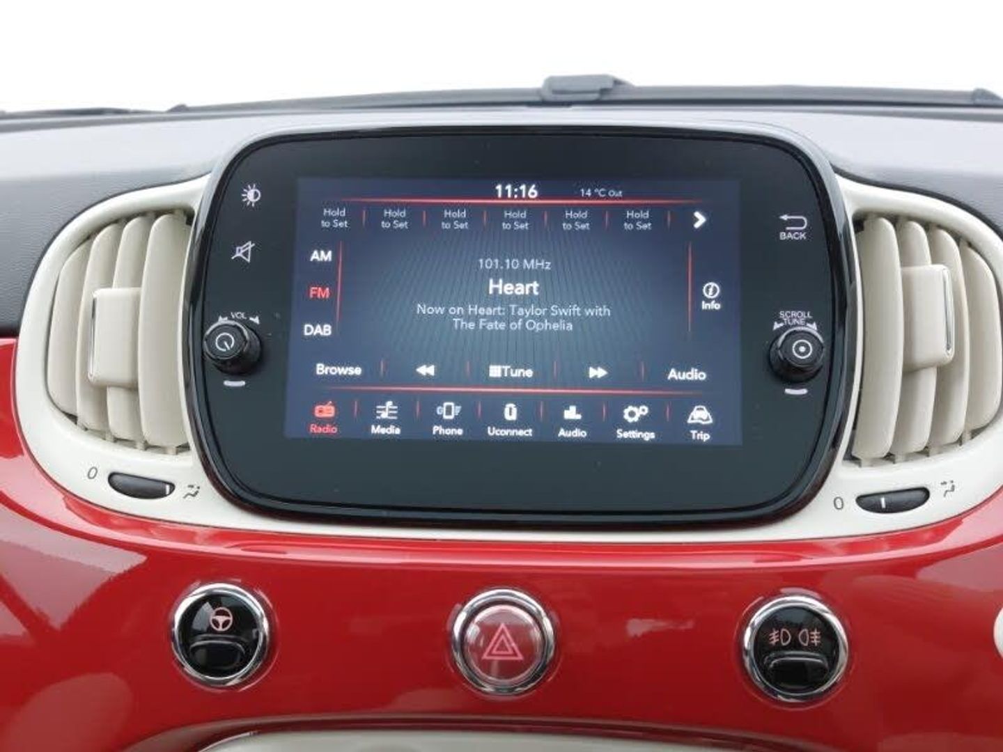 Fixed glass sunroof with sunblind, Apple car play/Android Auto, External temperature gauge, Power assist steering, Rear parking sensor, Speed limiter, Stop/start system, 7" HD Touchscreen Radio, Bluetooth, USB and DAB, Rear speakers, 4 speakers, Auto headlights, Dolcevita badge on fender, Heat insulated glass, Halogen headlamps, LED daytime running lights, Isofix child seat preparation, 50/50 split folding rear seats with height adjustable rear headrests, 7 airbags - Driver, passenger, side, window and drivers knee airbags, Traction control