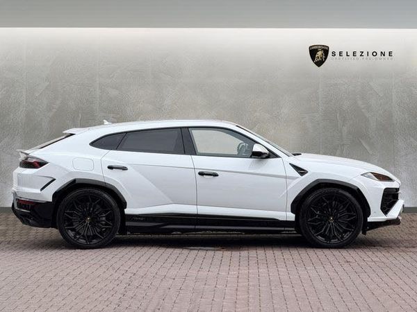 VAT Q, Finished in Bianco Icarus Metallic, 23in Galanthus Shiny Black Rims, Black Brake Callipers, Black Matt Exhaust Tailpipes, Door Handles in Shiny Black, Rear Lamborghini Logo in High Gloss Black, Rear Spoiler in High Gloss Black, Style Package in Full High Gloss Black, Electric Panorama Roof, Privacy Glass, Acoustic and Heated Insulated Glass, Unicolour Leather in Nero Ade, Performante Trim on Leather Seats, Ambient Light Package, Interior Dark Package, Black Anodized Treatment on Aluminium Inserts, Full Electric Front Seats with Ventilation and Massage, Rear Seats Heated, Optional Stitching, Optional Stitching on Steering Wheel, Sport Heated Steering Wheel in Full Leather with Dark Chrome Bezel and Red Central Marker, Embroidered Logo on Headrest, Bang and Olufsen Advanced 3D Audio System, Parking Assistant Package with Remote Park Assist, Vehicle Tracking System