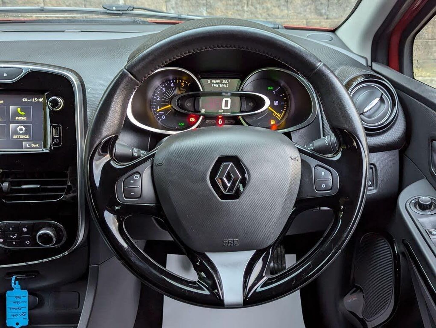 1.2L Storage Shelf Above Glovebox, 12V Power Socket, 17in Alloy Wheels - Desire with Black Inserts, 2x Storage Spaces for 2 Cups and Miscellaneous Items near Handbrake, 4L Front Glovebox, ABS - Anti Lock Brakes, Airbags - Deactivation - Front and Side - Driver and Passenger, Anti Drill Door Locks, Anti-Pinch Function on Electric Windows, Armrest - Front Centre with Storage Compartment, Automatic Headlights and Wipers, B-Pillar - Gloss Black, Body Coloured Parking Sensors - Rear, Bumpers - Body Coloured, Centre Console - Gloss Black - Dashboard Inserts - Gloss Black - Air Vent Surrounds with Matt Chrome Adjusters, Chrome Window Surrounds, Climate Control - Automatic with One Touch Demist Function and Air Quality Regulator, Clio Inscribed Under Renault Diamond Badge, Cruise Control with Speed Limiter, Dashboard - Soft Touch Dark Carbon, Daytime Running Lights - LED, Deadlocking, Door Handles - Body Coloured - Front, Door Handles - Interior Matt Chrome, Door Mirrors - Black Gloss - Electrically Adjustable and Heated, Driver Seat Belt Height Adjustable, Driver and Passenger Front - Side - Head and Thorax Airbags, EBA - Emergency Brake Assist, EBD - Electronic Brake Distribution, ESC - Electronic Stability Control, ETC - Electronic Traction Control, Eco Mode, Electric Child Safety Locks on Rear Doors Activated via a Switch on the Drivers Door Panel, Electric Windows - Front, Electric Windows - Rear, Exterior Chrome Touches - Side Door- Boot Lid Strip and Front Grille Strips, Front Dash Warning Indicator in Case of Heavy Braking, Front Fog Lights, Front Speaker Surrounds - Gloss Black with Red Bass Reflex Logo, Gear Change Indicator, Gear Knob Insert - Matt Chrome, HSA - Hill Start Assist, Handbrake Button - Matt Chrome, Handsfree Keycard with Push Button Start-Stop Function, Headlights - Halogen Double Optic with Black Surround, Headrests - Front Height Adjustable - SRP - System for Restraint and Protection, Headrests - Rear x3, Heating System with Pollen Filter, ISOFIX - Child Seat Fixing Points - Outer Rear Seats, Instrument Dial Surrounds - Matt Chrome, Lightly Tinted Windows, Lower Door Protector - Black Gloss with Chrome Insert, Power Assisted Steering - Electric Variable, RAID - Renault Anti Intruder Device, Rear Engine Badge, Rear Spoiler - Body Coloured, Rear Wiper, Remote Central Locking with Thatcham Approved Immobiliser - Thatcham Cat 2, Renault MediaNav, Seatbelt Warning Sound, Seats - 60-40 Split Folding Rear, Seats - Drivers Height Adjustment, Small Storage Area by Gear Stick for Phone-Keys, Steering Wheel - Height and Reach Adjustable, Steering Wheel - Leather with Chrome Insert, Steering Wheel Base - Gloss Black, Storage Space 1.2L - 1x Front Door, Strip Base of Bootlid - Chrome, Trip Computer, Tyre Inflation Kit, Tyre Pressure Warning Light, USB Connection, Windscreen Wipers - Variable Speed