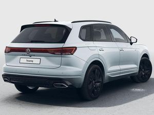 Ambient Lighting Pack for R-Li, Tow bar, power folding with Tr, Seat ventilation/massage seat(, Oyster Silver Metallic, Heated windscreen - laminated, Heat insulating and laminated safety glass windshield, Heated laminated and acoustic windscreen, Metallic - Oyster silver, Heat insulating darkened glass in side and rear windows, Privacy glass for rear side windows and rear window, tinted glass from B pillar backwards - 80%, Rain sensor, Rear wiper, Adaptive chassis control, Electric front tilt/slide panoramic sunroof and fixed rear sunroof, External USB type C socket and charging sockets, Gloss black roof rails, Rear side wing doors, Stainless steel door sill protection, Automatic coming/leaving home lighting function, Automatic headlights, HD LED Matrix beam plus digital headlight projection with variable light distribution, Headlight washers, Highway light, LED 3rd brake light, LED daytime running lights, LED rear combination lamp with variable lighting functions and special styling, Rear fog light with back up light on both sides, Rear light bar and illuminated logo, ABS, Generative braking with start and stop system, Driver profile selection, Intelligent park assist, PAS, Black door mirrors, Electrically power adjustable, heated, folding, auto dimming, front passenger exterior door mirror lowering function, 3 point seatbelts, outer rear with ECE lable, Child locks on rear doors, Curtain airbags, Driver and front passenger safety-optimised head restraints, Driver/Front Passenger airbags, Front seat side impact airbags, Height adjustable 3 point front seatbelts with pre tensioners, Passenger airbag deactivate switch, Three 3 point rear seatbelts, Two tone horn, Warning triangle and first aid kit, Front + rear carpet mats, 4 zone climate control, 12V socket in centre console, Airbag label on sun visor and B-pillar, Leather wrapped multifunction sports steering wheel, heated, with touch control and shift paddles, Double sun visors with illuminated vanity mirrors, Mobile phone interface with inductive charging, Diversity antenna for AM/ FM reception, eCall emergency system, 15 Screen Top infotainment system Premium (MIB3), Innovision cockpit, Multi-colour Active Info display, Warning signal and warning light for front and rear seatbelts not fastened, Aluminium decorative inserts, Gloss black decorative inserts in centre console, 3 rear headrests, 3 seat bench in 2nd row, Mechanical rear seat release, Power adjustable lumbar support in front, Power seats in front, right side with memory features and seat cushion depth adjustment, Rear seat backrest and split folding with center armrest, Single front passenger seat, Extra acoustics pack - Touareg, Memory pack plus - Touareg, Alarm system with interior protection, Easy open and close sensor controlled luggage compartment opening and closing with remote unlocking, Keyless Access Keyless locking and starting system with SAFELOCK, [Audio and Communications]E-Sim card for online connectivity, Wireless app connect, DAB Digital radio, We Connect and We Connect Plus functionality, [Drivers Assistance]Adaptive cruise control, Advanced driver attention and drowsiness monitor, Dynamic road sign display, Park Assist - Sensor controlled steering aid to assist parallel or bay parking, [Exterior]Black style comfort bumpers, Rear exhaust tailpipe, Black decorative trims, [Illumination]Dynamic headlight range control with dynamic cornering light, [Interior]Poor weather light, Brushed stainless steel pedals, Front centre armrest, Tool kit, [Safety and Security]Park Assist Pro with area view, Front assist, Extended pedestrian protection measures