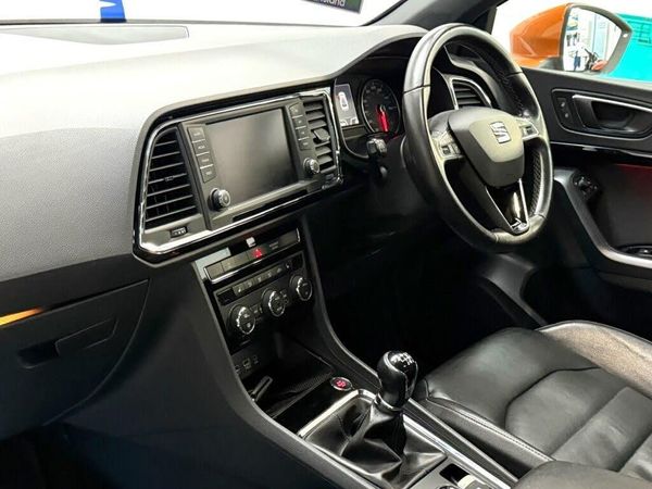 Samoa Orange, Full Link, Media System Plus, Navigation System, USB in Rear - x2, 18in Alloy Wheels - Performance 36-1, Aluminium Roof Rails, Chrome Double Exhaust Pipe, High Gloss Black Grille, Tinted Windows, Advanced Multi-Colour Interior Ambient Lighting with LED Interior Illumination and LED Illuminated Glovebox, Black Interior Roof, Convenience Pack, Dual Zone Climate Control, Leather Gear Knob, Leather Steering Wheel, Steering Wheel-Mounted Audio and Phone Controls, Winter Pack, Comfort Suspension, Electronic Differential Lock System - XDS, LED Daytime Running Lights, Full LED Headlights, LED Taillights, Progressive Steering, Anti-Lock Braking System - ABS, Cruise Control, Electronic Stability Control - ESC, Electric Parking Brake Including Autohold Function, Front Assist - City Emergency Braking and Pedestrian Protection, Hill Hold Control, Rear Parking Sensors, Rear View Camera, SEAT Drive Profile with Driving Experience Button, Trip Computer, Tyre Pressure Monitoring System