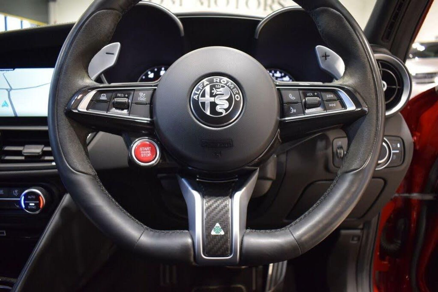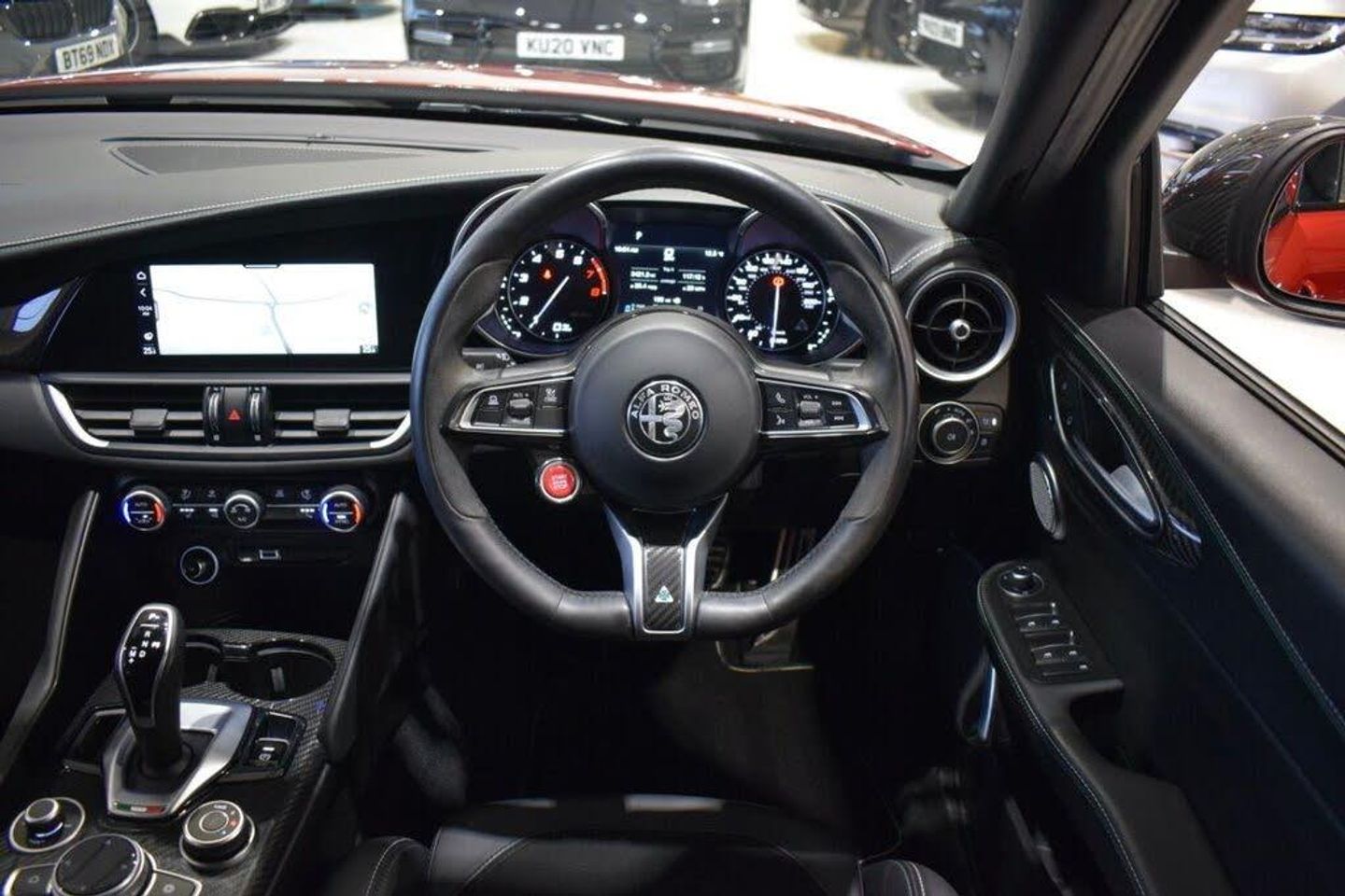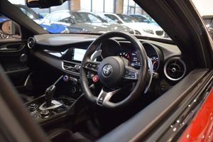 GTA Red, 12v Power Outlet, 19in Alloy Wheels - Dark - Lightweight, 40-20-40 Split Folding Rear Seats, 7in Colour TFT Instrument Cluster, 8.8in Colour Display Touchscreen, ABS - Anti Lock Braking System, Active Cruise Control, Airbags - Driver, Airbags - Passenger, Alarm System with Bonnet and Intrusion Protection, Alfa Connect 3D Nav 8.8in Infotainment System, Alfa Connect Box, Alfa Connect Services, Alfa SDC Suspension - Synaptic Dynamic Control, Aluminium Shift Paddles on Steering Column, Aluminium Sports Pedals and Footrest, Apple CarPlay and Android Auto, Autonomous Emergency Braking - AEB, Blind Spot Monitoring - BSM, Brake Calipers - Anodised, Car Transportation Protection Cover - Light, Carbon Fibre Interior Accents, Connectivity - USB & Aux-in Armrest Ports, Convenience Pack, DAB Radio, DNA Unlatched, Dark Finish Giulia Badge, Dark Finish Rear Lights, Dark Finish V Grille, Dark Tinted Rear Windows, Dusk Sensor, Electric Windows - Front and Rear, Electrically Adjustable and Power Folding Door Mirrors, Electrochromic Rear View Mirror, English Handbook, European Maps, Fix and Go Puncture Repair Kit, Front Airbag Deactivation on Passenger Side, Front Courtesy Map Lamps, Front and Rear Parking Sensors, Headlining - Dark, Heated Steering Wheel, Heated Washer Jets, Laminated Glass, Lane Departure Warning - LDW, Leather Dashboard - Door Panels and Central Armrest, Monochrome Central Wheel Caps, Power Seats Pack, Power Steering, Quadrifoglio Badge, Quadrifoglio Leather Flat Bottomed Sports Steering Wheel, Quadrifoglio Leather and Alcantara Sport Seats, Rain Sensors, Rearview Parking Camera with Dynamic Grid Lines, Remote Central Door Locks, Satin Finish Speaker Surround, Seats - Heated Front, Specific 3rd Central Seatbelt for Quadrifoglio, Sports Leather Gear Stick, Steering Wheel Controls, TMC - Pro, TPMS - Tyre Pressure Monitoring System, USB - Front Centre Console, Window Surrounds - Black, Wireless Charging Pad, 19in Alloy Wheels - 5 Hole- Dark, Brake Calipers - Yellow, Carbon Fibre V Grille Surround - MOPAR, Carbon Mirror Covers - MOPAR, Harman Kardon Audio, Leather-Alcantara - Sports Seats - Black with Red Stitching, Quadrifoglio Leather-Alcantara Flat Bottomed Sports Steering Wheel with Carbon Insert