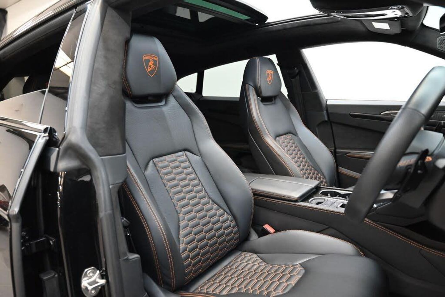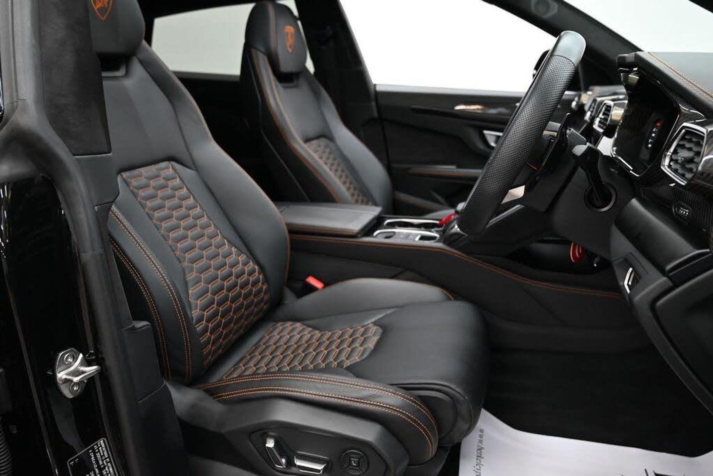 21in Alloy Wheels - Alcione Silver Rims, ABS - Anti-lock Braking System, ASR - Anti Slip Regulation, Airbag - Driver, Airbag - Passenger, Airbag - Side, Anti-Theft Alarm, Auto Headlights and Rain Wipers, Automatic Dual-Zone Air Conditioning System with Integrated Active Carbon Filter, Bluetooth, Carbon Ceramic Brakes with Silver Painted Brake Calipers, Colour Touch Screen, Cup Holder, DAB Radio, Daytime Running Lights - LED, Door Mirrors - Electrically Adjustable-Heated and Folding, EBD - Electronic Brake Distribution, ESC - Electronic Stability Control, Electric Front and Rear Windows, Electromechanical Power Steering, Electronic Traction Control, Head Up Display - HUD, Headlights - LED, Headliner Alcantara, HiFi Base, Highway Assistant Package, Lamborghini Smartphone Interface - Apple Carplay and Android Auto, Lamborghini Warranty 4th Year, Multifunction Steering Wheel in Smooth Leather, Navigation System, Remote Central Locking, Urban Road Assistant Package, Bang and Olufsen Advanced 3D Audio System, Digital Pressure Gauge, DAB and Pay TV, 23in Alloy Wheels - Taigete Shiny Black Rims, Vehicle Tracking System - VTS, Parking Assistant Package with Remote Park Assist, Style Package - Shiny Black, Rear Spoiler in High Gloss Black, Rear Diffuser and Door Inserts in High Gloss Black, Rear Diffuser - Door Inserts and Front Splitter in High Gloss Black, Black Roof Rails, Electric Panorama Roof, Ambient Light Package, Front and Rear Seats Heated, Bicolour Sportivo Leather - Arancio Leonis-Nero Ade, Full Electric Front Seats with Ventilation and Massage, Lower Leather Package, Q-Citura Interior on Leather, Soft Close, Smoker Package, Upper Leather Package, Offroad Modes, Off Road Package, Small Interior Carbon Package, Big Interior Carbon Package on Front Console, Wet-Arm Wiper - Headlight Washer and RVC Cleaner, Emergency Kit, Mirror Housings in Shiny Black - Ad Personam, High Gloss Black Rear Diffuser - Ad Personam, Anti Stone Chipping Film, Comfort Package, Optional Stitching, Black Matte Exhaust Tailpipes, Wheel Arches in Body Colour - Ad Personam, Embroidered Logo on Headrest, Carbon Ceramic Brakes with Orange Painted Brake Calipers, Multi Function Heated Steering Wheel with Perforated Leather Inserts