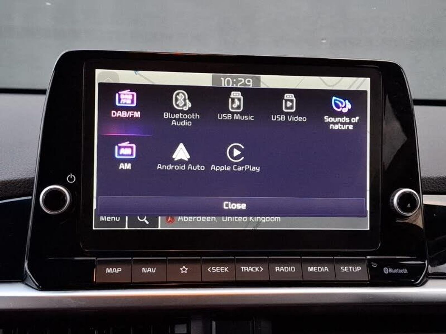 Android Auto, Apple CarPlay, Cruise control, Heated steering wheel, LED daytime running lights, Rear parking sensor, Speed limiter, Steering wheel audio controls, 8" touch screen satellite naviagtion with RDS and DAB with telematics, Apple car play/Android Auto with voice control, Wireless Smartphone charger, Reversing camera system with dynamic guidelines (Integrated into centre fascia screen), Rear parking sensors, Kia Connect (UVO), External temperature gauge, Emergency stop signalling system, Emergency call service, Cruise control + speed limiter