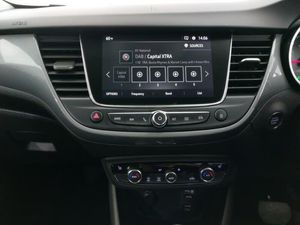 Multimedia sat nav pro with 8" colour touchscreen, AM/FM, Bluetooth streaming, Bluetooth mobile phone portal, apple CarPlay/Android Auto + 6 speakers, Panoramic rear view camera, Cruise control + speed limiter, Winter pack - Crossland, Front camera system, Without wireless charger, 3.5" colour instrument display, Forward collision warning, Lane departure warning system, DAB Digital radio, 17" five twin spoke diamond bi colour alloy wheels, Automatic headlamp levelling system, Automatic high beam control with cornering light, LED daytime running lights, Dual zone electronic climate control