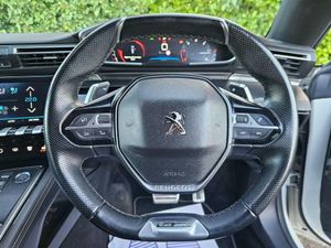 18in Alloy Wheels - Hirone Diamond Cut Two Tone, 3D Connected Navigation, 8-Speaker Radio - MP3 Compatible, ABS - Anti Lock Braking System, Active Bonnet, Aikinite Contrast Stitching to Armrest - Front Centre Console - Door Panels and Dashboard Facia, Airbags - Adaptive Driver and Front Passenger, Airbags - Front Side, Airbags - Front and Rear Curtain, Alarm - Perimetric - Volumetric with Lift and Tilt Sensor, Aluminium Longitudinal Roof Bars - Gloss Black, Ambient Lighting to Storage Compartments - Footwells and Cupholders, Automatic Door Locking When Moving Off, Automatic Dual Zone Climate Control, Automatic Hazard Light Activation Upon Heavy Brake Application, Blue Ambient Lighting to Front Door Panels and Front Centre Console, Bluetooth Telephone Facility, Central Front Armrest with Butterfly-Wing Opening and Illuminated Storage Compartment, DAB Digital Radio, Dark Tinted Rear Side and Tailgate Windows, Dashboard - Front and Rear Door Panel Finish - Carbon Effect, Dashboard Facia - Intricate Stitch Detail, Door Mirror Mounted LED Courtesy Approach Lights, Door Mirror Shells - Nera Black, Driver Plip Action, Driver and Front Passenger Seat Mechanical Height Adjustment, EBA - Emergency Brake Assist, EBFD - Electronic Brake Force Distribution, ESP - Electronic Stability Programme, Eco-Coaching, Electric Child Locking Functionality on Rear Windows and Doors, Electric Parking Brake includes Hill Assist, Electric Power Steering with Reach and Rake Adjustable Steering Column, Exhaust Tailpipe - Chrome, Exterior Door Handles - Body-Colour, Exterior Temperature Indicator with Ice Warning, Flocked Front Door Pocket Interior, Flocked Glove Box Interior, Front Central Console with Two Cup-Holders, Front Optimised Safety Headrests and Rear Retractable Headrests - x3 - Height-Adjustable, Front Three-Point Retractable Seatbelts - Height-Adjustable with Pre-Tensioners and Force Limiters, Front USB Socket x2, Front Windscreen Wiper with Magic Wash Cleaning System, Front and Rear Carpet Mats in Black with Copper Stitch Detail, Full LED Headlights with Static Cornering Light Functionality, GT Line Model Designation Badging, Gear Lever - Full Grain Leather and Satin Chrome, Gloss Black B and C Pillar and Aerodynamic Deflector Trim, Gloss Black Rear Cluster Connecting Strip, Headlights Left On Audible Warning, Heated Rear Windscreen with Integrated Antenna, ISOFIX Child Seat Fittings - x3 - In the Front Passenger and Outer Rear Seats, Indirect Tyre Under-Inflation Detection, Interior LED Lighting Plus, LED Daytime Running Lights, LED Front Indicators, LED Side Indicator Lights Integrated into Door Mirrors, Locking Wheel Bolts, Map Pockets on Front Seat Backs, Mirror Screen, Mistral Full-Grain Perforated Leather Steering Wheel with Aikinite Stitch Detail and Satin Chrome GT Emblem, Model Designation Badges - Front and Rear, Multifunction Trip Computer, One-Touch Electric Front and Rear Windows with Pinch Protection, PEUGEOT Open and Go System, Pedals and Foot Rest - Aluminium, Peugeot Connect SOS and Assistance, Peugeot i-Cockpit, Peugeot i-Cockpit Amplify, Piano Keys - Chrome Plated Toggle Switches to Access Touchscreen Functions, Power Folding Door Mirrors with Blind Spot Detection Indicator, Programmable Cruise Control and Speed Limiter, Radiator Grille - Chrome Chequered and Chrome Edge Trim, Rear Armrest with Ski Flap and Two Cup Holders, Rear Centre Console Ventilation System, Rear Coat Hooks x2, Rear Fog Light, Rear Full LED 3D Peugeot Signature Claw Effect Lights - With Daylight Function, Rear Lower Bumper Diffuser - Gloss Black, Rear Number Plate Lights x2, Rear Parking Sensors, Rear Reversing Lights, Rear Three-Point Retractable Seatbelts x3 - with Pre-Tensioners and Force Limiters in the Outer Rear Seats, Rear USB Socket x2, Remote Central Locking - Two Remotes, Roof Lining - Mistral Black, Safety Pack, Safety Plus Pack, Seating - Driver and Front Passenger Seat Adjustable Cushion Nose, Seating - Driver and Front Passenger Seat Manua