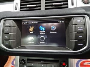 20in Alloy Wheels - 6 Spoke - Style 601 - Vibration Polished Finish, Contrast Painted Roof with Matching Spoiler - Santorini Black, Black Design Pack, Privacy Glass, Roof - Fixed Panoramic, Auto-Dimming Interior Mirror, LUX Pack, Tailgate - Powered Electrical Tailgate, 360 Degree Surround Camera System, Blind Spot Monitor and Closing Vehicle Sensing with Reverse Traffic Detection, 825W Meridian Surround Sound System, Parallel Park - Parking Exit - Perpendicular Park, TV - Digital, Loire Blue, 10/8 Way - Electric Seat Adjustment with Driver Memory, 12V Power Socket, 12V Socket in Loadspace, 2-Zone Automatic Climate Control, 20in Alloy Wheels - 5 Split Spoke Style 504 - Sparkle Silver Finish, 380W Meridian Surround Sound System, 5in TFT Driver Information Centre, 8in High Resolution Touch Screen, ABS - Anti Lock Braking System, Adaptive Dynamics, Airbags - Driver Knee, Airbags - Driver and Passenger Side, Airbags - Full Size Driver, Airbags - Full Size Passenger, Airbags - Row One and Two Head Curtain, Alarm, Approach Lights, Armrest - Rear Centre with Storage Compartment and 2 Cupholders, Audible Seat Belt Warning, Audio Connectivity System, Audio System - DAB, Automatic Headlight Levelling, Automatic Headlights, Bluetooth Audio Streaming, Bluetooth Phone Connection, Carpet Mat Set - Front and Rear, Cruise Control, DSC - Dynamic Stability Control, Door Mirrors - Electrically Adjustable - Heated and Power Folding with Memory Function, EBA - Electronic Brake Assist, EBD - Electronic Brake-Force Distribution, EDC - Engine Drag Torque Control, EPAS - Electronic Power Assisted Steering, Electric Parking Brake, Electric Windows - Front and Rear, Evoque Badge in Red, Exterior Door Handles - Premium Body Coloured, Exterior Mirrors - Auto Dipping in Reverse Gear, Footwell Lights - Front, Front Fog Lights, HDC - Hill Descent Control, HDD Premium Navigation with Touch Screen, HSA - Hill Start Assist, Hazard Warning Lights Under Heavy Braking, Headlight Power Wash, Headlining - Cirrus Morzine, Heated Front Seats, ISOFIX Child Seat Anchor Points, Illuminated Tread Plates with Range Rover Lettering, InControl Remote 3 Year Package, Interior Mood Lighting, LED Front Signature Lights, Land Rover - Tyre Repair System, Locking Wheel Nuts, Multi-Function Steering Wheel, Parking Aid - Front, Parking Aid - Rear View Camera, Proximity Sensing and Touch Detection For Overhead Map Lights, Push Button Start, RSC - Roll Stability Control, Rain Sensing Windscreen Wipers, Rear Cupholders, Remote Central Locking, Roof - Body Coloured, Seats - 3 Seat Bench in Rear, Seats - 60/40 Split, Seats - Lumbar Support - Drivers, Seats - Lumbar Support - Passengers, Seats - Rear Centre Head Restraint, Speakers x11, Spoiler - Tailgate Mounted, Steering Column - Manual For Height and Reach Adjustment, Steering Wheel - Perforated Oxford Leather, Subwoofer, Sun Visors - Illuminated Vanity Mirrors, TCS - Traction Control System, TPMS - Tyre Pressure Monitoring System, TSA - Trailer Stability Assist, Terrain Response, Torque Vectoring, Trim Finisher - Textured Aluminium, Trip Computer, USB Socket - Front, Windscreen - Heated, Windscreen Washer Jets - Heated, Xenon Headlamps with LED Signature