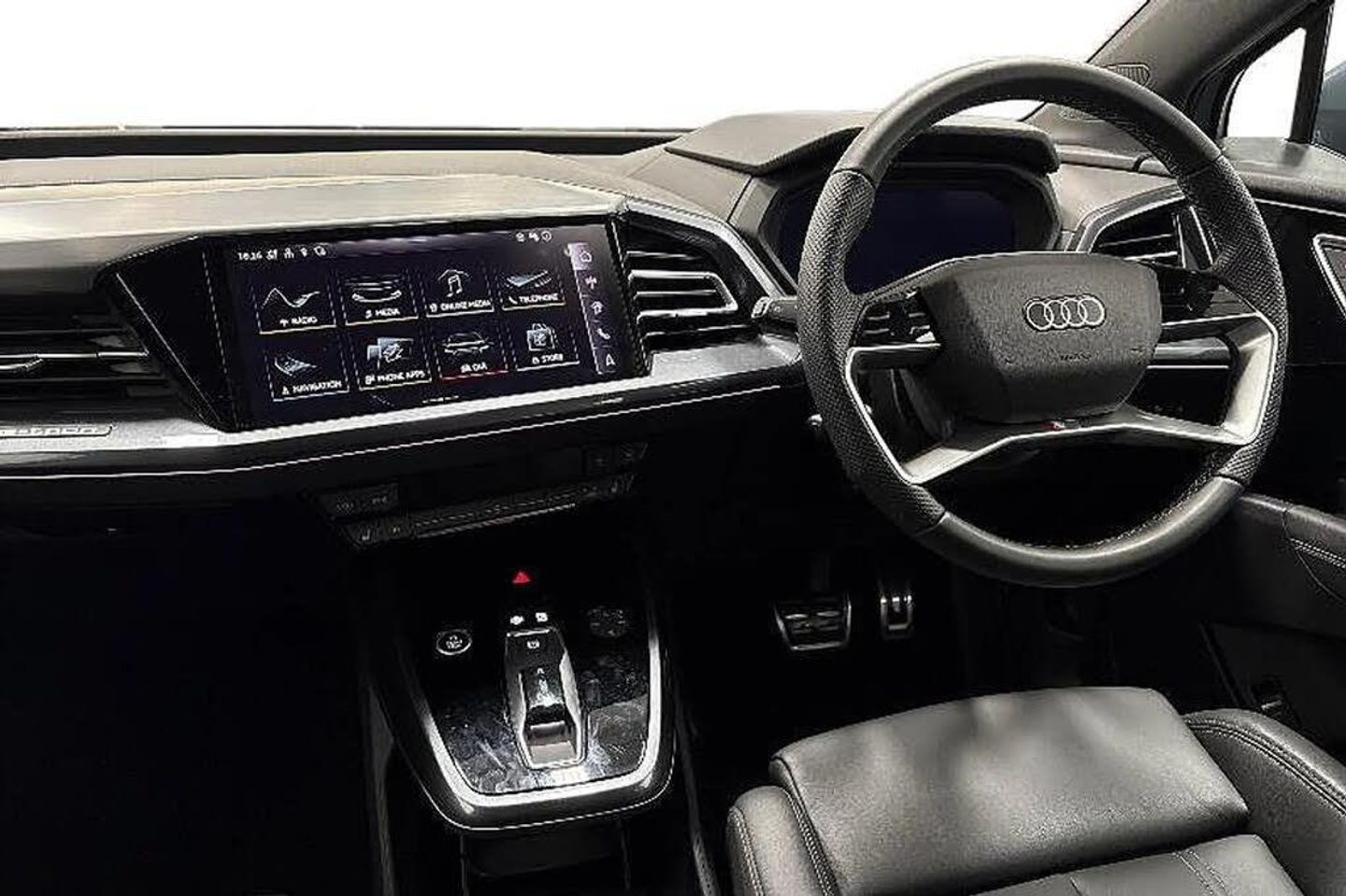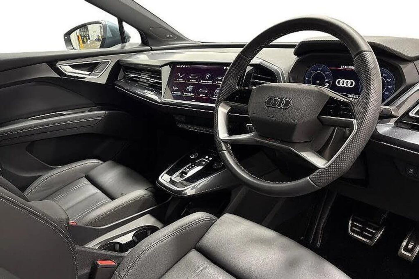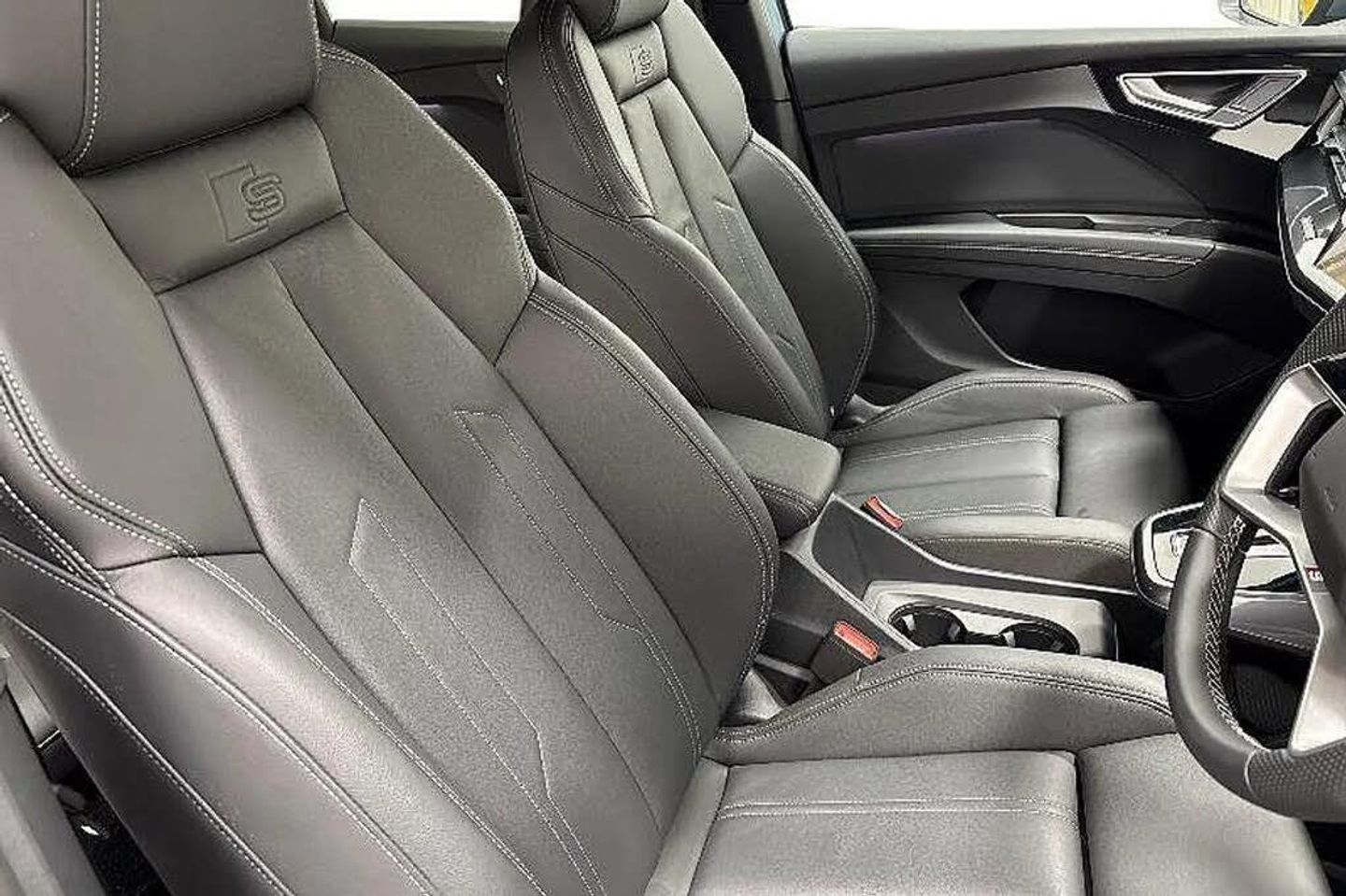 Contrasting paint finish,e-tron sport sound,Accent surfaces - Gloss Black,S line Twin Leather,S line Twin Leather Pack,S line,Storage package,Aluminium interior elements,Sun protection glass - tinted,Ambient lighting package plus,Front Sport seats,Stainless steel pedals,Door sill trims with aluminium inlays - front - illuminated - S emblem,Technology Pack,Equipment package for Great Britain,Sport suspension,Bumpers - S line,Rear seat backrest - split-folding,Inlay - Matt Brushed Aluminum - Dark,20" 5-Y-spoke alloys,Steering wheel with trim in chrome look - S emblem - steering wheel grips in perforated leather and contrasting stitching,Headlining in cloth - Black,12-volt & 2 x USB-C in rear,Door armrest in artificial leather,Matrix LED headlights with digital light signatures - dynamic light sequencing and dynamic turn signal,Matrix LED headlights,LED rear lights with illuminated light strip - dynamic turn signal and dynamic light sequencing,Headlight cleaning system,Heat pump,SONOS premium sound system,Audi phone box light,Equipment options subset for Great Britain