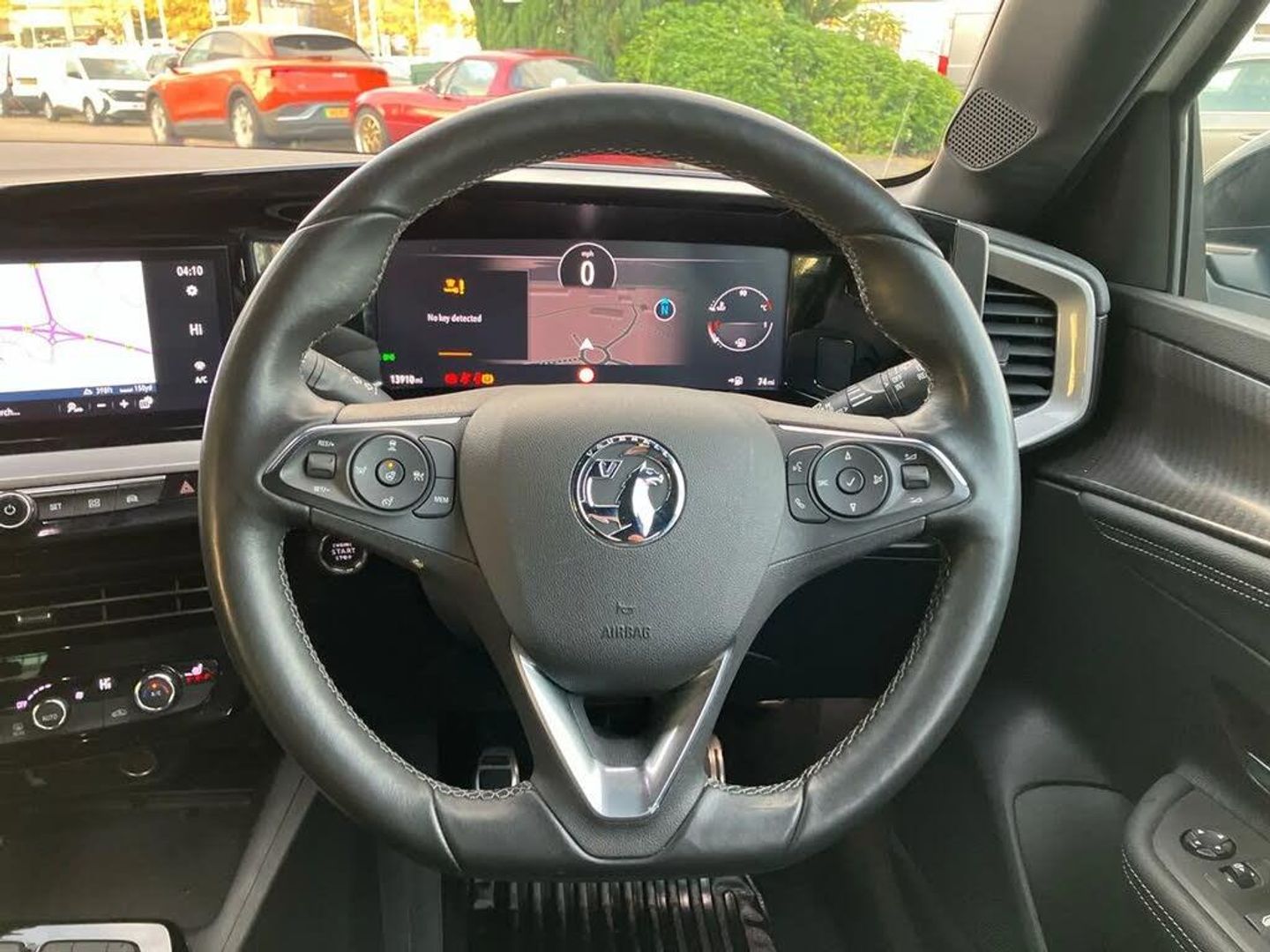 12" digital instrument cluster,Adaptive cruise control with speed limiter,Digital instrumentation with digital speedometer, rev counter, fuel and water temperature gauge,Driver drowsiness alert system,Driver information display with multi function trip computer, audio info, digital clock and outside air temperature with ice warning function,Engine start/stop button,EV information display,Extended traffic sign recognition,Front and rear parking distance sensors,Front camera and radar system,Gearshift up/down indication light,Lane keep assist system (LAS) with Lane departure warning system (LDWS),Lights on audible warning,Panoramic rear view camera,Power assisted speed sensitive steering,RDS with traffic programme,Side blind spot alert and flank guard,Smartphone integration compatible with Apple CarPlay and Android Auto,Sports switch with engine sound enhancement,Start/stop system,Vauxhall connect with e-Call,6 speed manual transmission,6 speakers,AM/FM stereo radio with 36 station presets,DAB Digital radio,Flexible Roof Mounted Radio Aerial,Front USB connection,Mobile phone portal - bluetooth connect, vehicle microphone, handsfree calls, SMS read out and reply, phone book access,Multimedia Navi Pro with 10" colour touchscreen,Steering wheel mounted controls,Two rear USB sockets,Adaptive brake lights,Auto high beam assist,Automatic headlamp levelling,Automatic lighting control with tunnel detection,Automatically dimming anti dazzle rear view mirror,Black door mirror housings,Black front and rear bumper inserts,Black Griffin logo and vizor frame,Body colour door handles,Body colour front and rear bumpers,Dark tinted rear side windows + tailgate window,Electric adjustable/heated/folding door mirrors + puddle lights,Electrically operated front and rear windows with safety auto reverse and one touch up/down facility,Hazard warning lights,Heated rear window+rear wash/wipe,Integrated black tailgate spoiler,IntelliLux Matrix LED headlights with adaptive forward lighting with anti glare beam,LED 3rd brake light,LED daytime running lights,LED front fog lamps,LED side repeat indicators,LED tail lights,Rear foglight,Rear side wing doors,Reversing light,Solar heat absorbing windscreen and windows,Two speed rain-sensitive windscreen wipers with variable intermittent wipe,Windscreen and side window demist vents,12V Accessory socket,3 seat bench in 2nd row,3 spoke flat bottomed leather effect steering wheel with satin chrome effect bezel,4 speed fan with illuminated controls,4 Way driver seat with lumbar and massage function,6 way manual adjustable driver fore/aft, up/down with reclining seatback,6 way manual adjustable front passenger fore/aft, up/down with reclining seatback,60/40 split folding rear seat,Air recirculation system,Alcantara/leather upholstery,Black headliner,Cabin particulate filter - removes dust, airborne particles and pollen,Centre console with two cup holders at front and one in rear,Chrome effect interior door handles,Door pockets with two litre capacity,Driver and passenger sun visors with vanity mirror,Electronic climate control (ECC),Four adjustable facia vents,Four load restraint lashing eyes,Front centre armrest with storage,Front head restraints,Front map reading lights,Front seat back storage pockets,Fully carpeted load area,Heated front seats,Heated steering wheel,Interior courtesy light,Interior tailgate handle,Luggage compartment cover,Luggage compartment lighting,Movable boot floor,Reach + rake adjustable steering column,Single front passenger seat,Three height adjustable rear seat head restraints,Twin gas assisted tailgate struts,Black Pack with badge - Mokka,2x Isofix child seat fitting on outer rear seats,3x3 point rear seat belts,Anti-lock braking system (ABS),Child proof locks on rear doors,Cornering brake control,Deactivation switch for front passenger front and side impact airbags,Drag torque control,Driver and front passenger airbags, front seat side impact airbags, full size curtain airbags,Electronic brake force distribution,Electronic Stability Programme (ESP),Emergency brake assist,Enhanced automatic emergency braking with pedestrian detection,Forward collision alert at all speed,Hill start assist,Inertia reel lap and diagonal seatbelts for all seats,Seatbelt unfastened audible warning and warning light,Straight line stability control,Traction control,Tyre pressure monitoring system,Electronically protected audio equipment,Engine deadlock immobiliser,Freewheeling door locks,Key left in ignition audible warning,Keyless entry and start,Locking wheel nuts,Remote control central locking,Remote control ultrasonic security alarm system,Visible vehicle identification number,Black facia with silver trim insert,Instrument panel bar in polar silver,Light grey trim inserts on front doors,18" bi colour alloy wheels