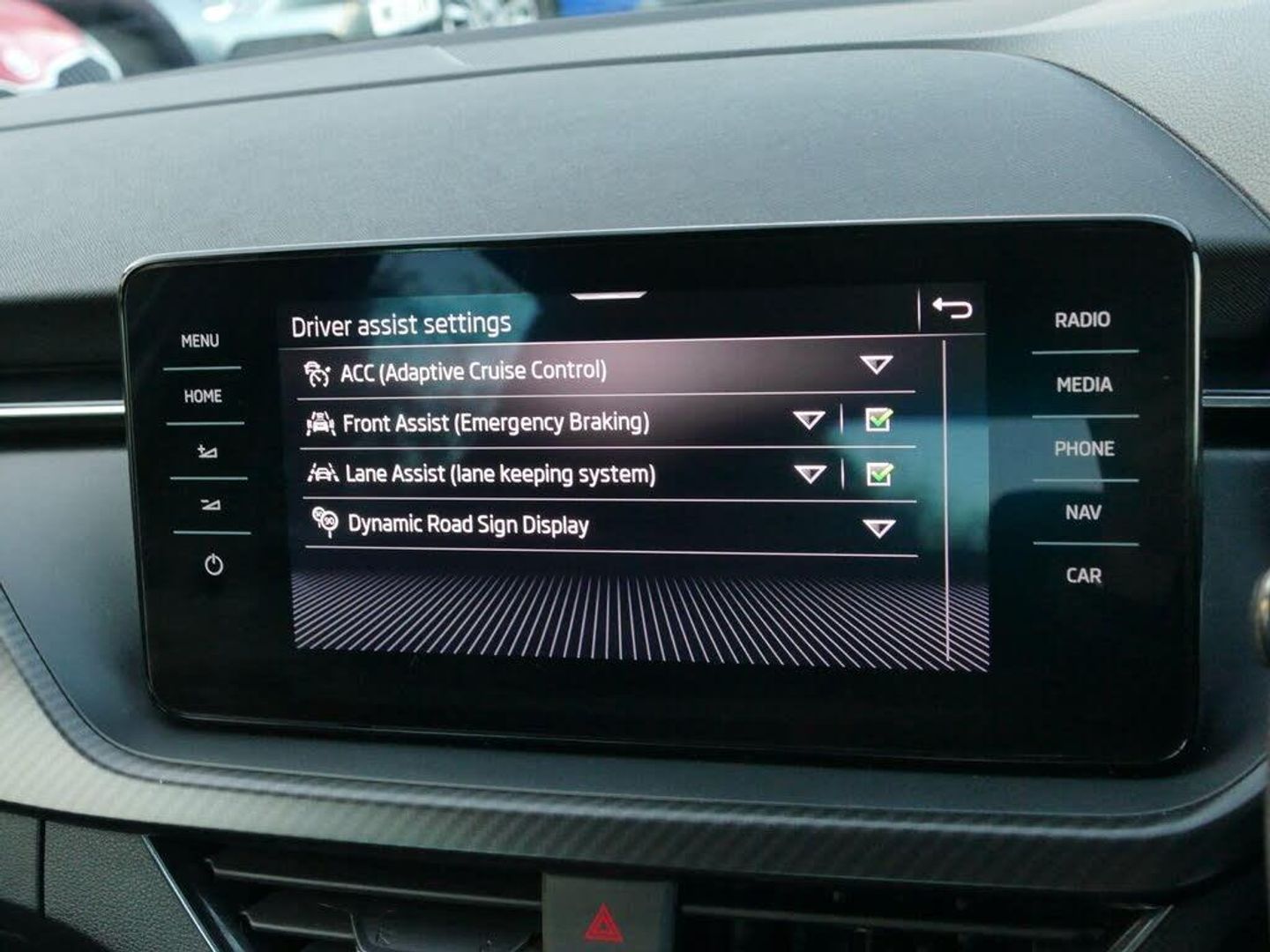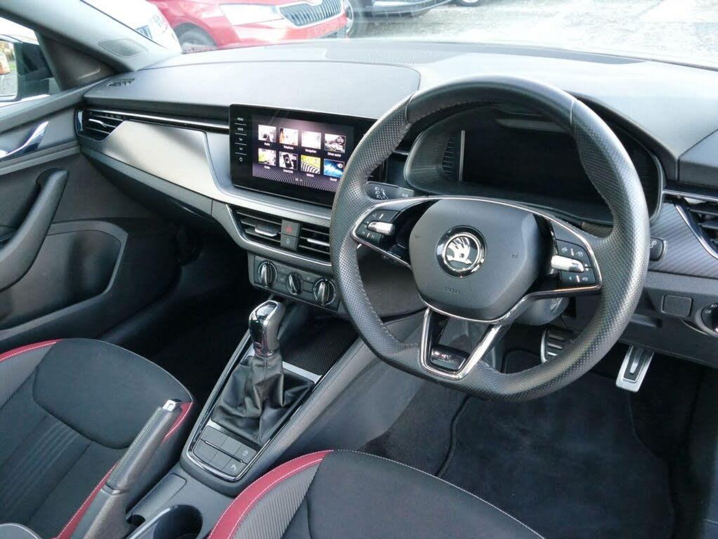 Travel Assist, Parking Sensors - Front and Rear, ACC - Adaptive Cruise Control, 12V Socket on Central Console, 18in Alloy Wheels - Vega in Black, 2 USB-C Ports, 3-Spoke Sports Leather Multi-Function Steering Wheel, ABS - Anti-Lock Braking System, Alarm, Aluminium Pedals, Ambient Lighting White, Amundsen Satellite Navigation with 9.2in Colour Touchscreen with Virtual Cockpit, Anti-Theft Locking Wheel Bolts, Automatic Headlight Control, Black Roof Spoiler, Bluetooth, Bolero Radio with 8in Touchscreen Display, Carbon Effect Decorative Inserts, Chrome Interior Door Handles, Curtain Airbags, DAB Radio, Decor Strip on Dashboard and Door Panel, Door Handles - Body Coloured, Door Mirrors - Black, Door Mirrors - Electrically Adjustable - Heated and Folding, Drivers and Front Passenger Air Bag, Emergency Call and Proactive Services, Exterior Design Pack, Front Assist, Front Centre Armrest with Stitching, Front Fog Lights, Front Head and Side Airbags, Front and Rear Electric Windows, Full LED Headlights with Adaptive Front Light System, Glasses Storage in Roof Liner, HHC - Hill Hold Control, Height Adjustable Driver Seat, ISOFIX for Rear Passenger Seat, Lane Assist, Leather Gearshift Handle and Handbrake Lever, Manual Air Conditioning with Pollen Filter, Manual Lumbar Support for Front Seats, Multifunction Trip Computer, One Tone Horn, Parking Sensors - Rear, Passenger Airbag Switch Off Function, Power Steering, Privacy Glass, Radiator Grille - Black, Rain and Light Assistant with Auto-Dimming Rear View Mirror, Reading Lights in the Front - For Driver and Passenger, Rear Diffuser - Black, Rear LED Lights with Dynamic Indicators, Rear View Camera, Remote Central Locking with SAFE Function, SKODA Lettering on Tailgate in Black, Seatbelt Reminder, Seats - Front Passenger Height Adjustment, SmartLink, Speakers x8, Speed Limiter, Sun Visor with Make-up Mirror for Front Passenger, Temporary Steel Space Saver Spare Wheel, Textile Floor Mats, Three Rear Head Rests, Tinted Windows, Umbrella, Virtual Cockpit