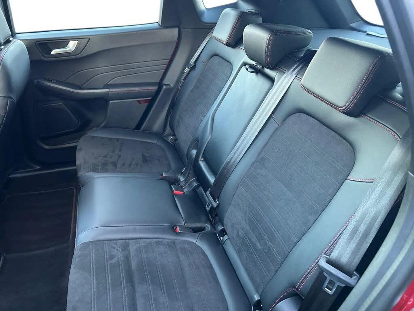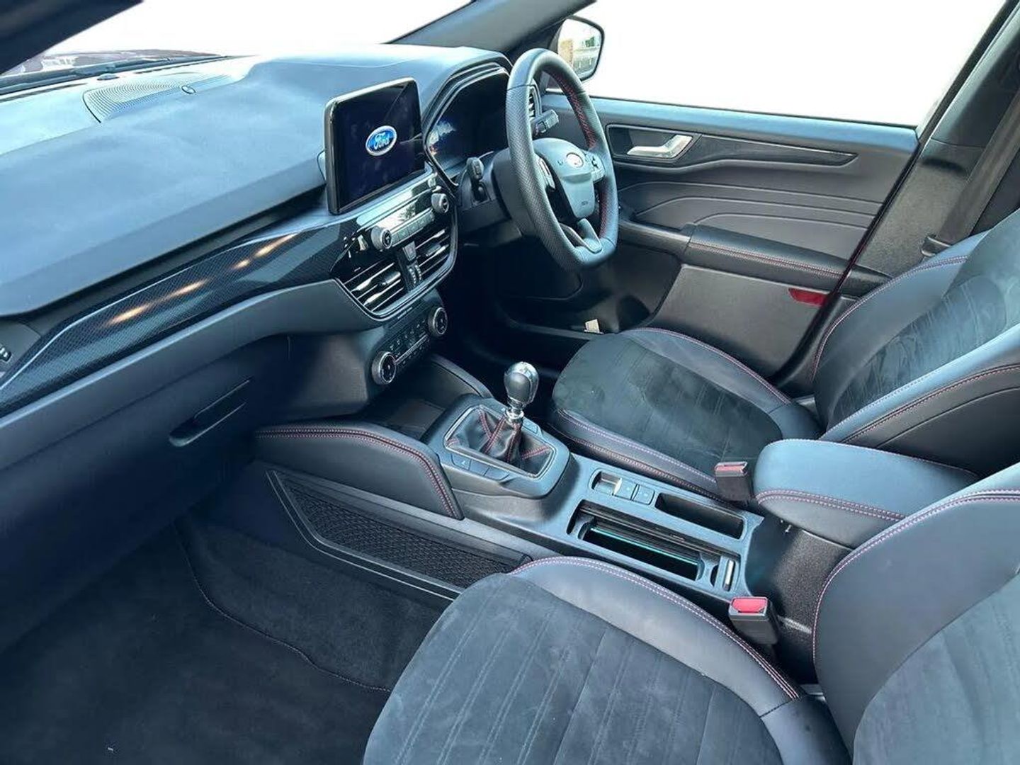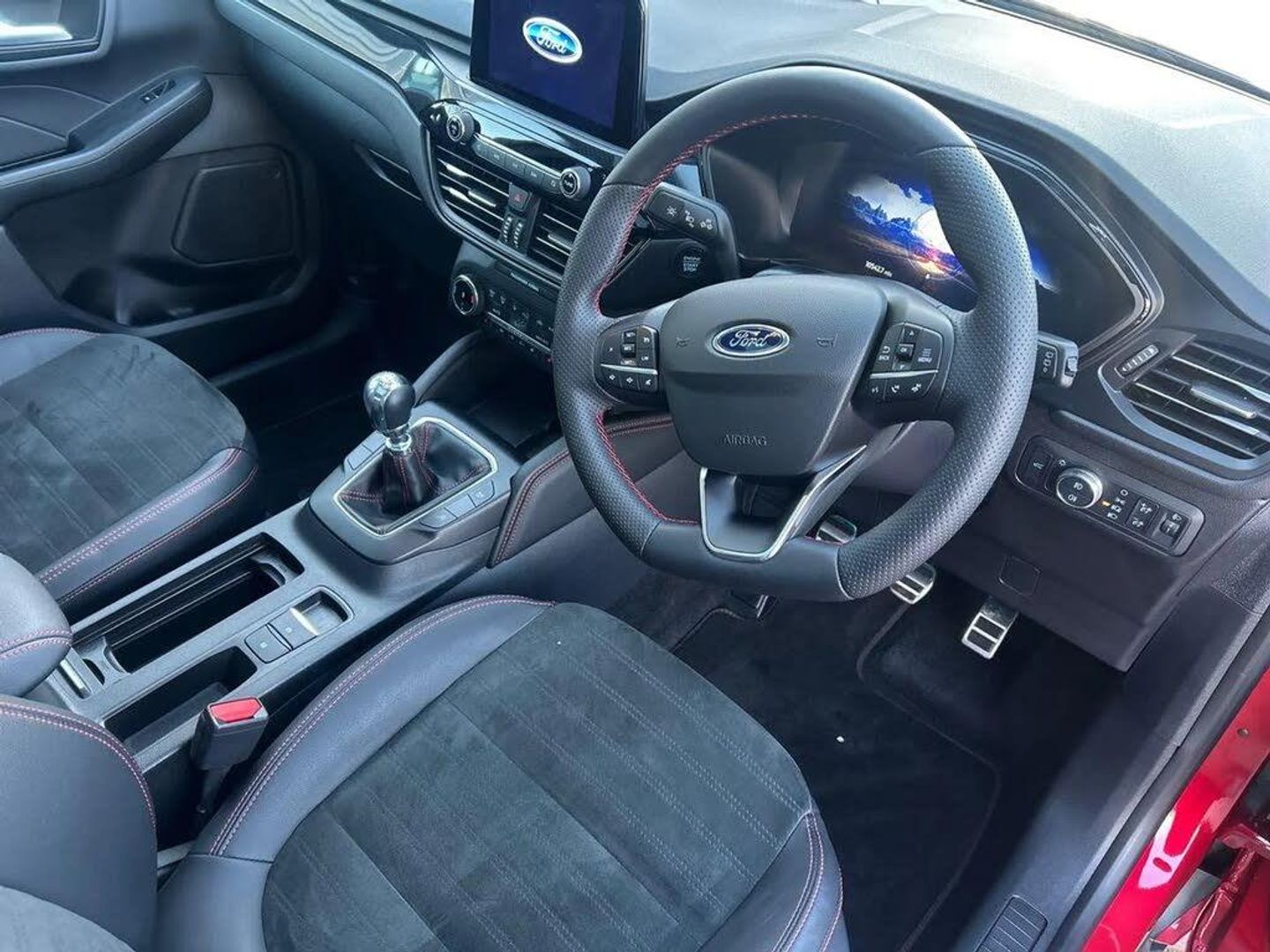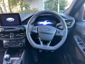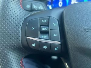 12.3" digital colour instrument cluster,Ford easy fuel,Ford SYNC 3 with 8" TFT LCD touchscreen, App Link, andriod auto/apple carPlay, emergency assistance and navigation with Ford pass connect,Front and rear parking sensors,Hands free power tailgate,Lane keeping aid with lane departure warning,Power assist steering,Rear view camera,Selectable drive modes,Service interval indicator,Sports suspension,Twist beam rear suspension,B&O premium audio system with 10 speakers and subwoofer, 2 USB ports, DAB radio/CD,Auto headlamps with high and low beam,Black roof rails,Body colour bumpers,Day/night rear view mirror,Front LED fog lamps,Large rear roof spoiler,LED daytime running lights,LED rear lights,Power folding, electrically adjustable and heated door mirrors with puddle lights,Power front/rear windows with global close,Power opening panoramic roof,Quickclear heated windscreen,Rain sensing wipers,Rear privacy glass,Rear side wing doors,Rear wiper,ST Line body styling kit with unique front and rear fascia and bumper, rear painted diffuser, front painted skid plates, dark mesh upper grille,ST Line front scuff plates,Third brake light,Twin exhausts,2nd row sliding seats with 60:40 split,Alloy pedals,Centre console with electronic parking brake,Dark headlining and pillars,Electronic automatic temperature control (EATC),Flat bottomed leather steering wheel in sensico with red stitching,Front and rear head restraints,Heated passenger and driver seats,Heated rear seats,Heated steering wheel,Partial premium touch Sensico with black cloth inserts and red stitching,Rear centre head restraint,Single front passenger seat,Sports seats,ST Line front and rear floor mats,ST Line gear knob,3x3 point rear seatbelts,Airbags - front driver/passenger, front and rear curtain,Drivers knee airbag,Electronic stability control (ESC) and ABS,Ford MyKey Gen 2 safety system,Manual child proof rear door locks,Post collision braking,Pre collision assist with autonomous emergency braking,Rear seat Occupancy alert,Red brake calipers,Tyre pressure monitoring system,Engine immobiliser,Keyless entry and Ford power start button (Keyless start),Locking wheel nuts,Remote powered central double locking doors,Thatcham category 1 alarm,Lucid Red,Mini Spare Wheel,Partial Sensico - Rapton Cloth - Black with Red Stitching,Wireless Charging