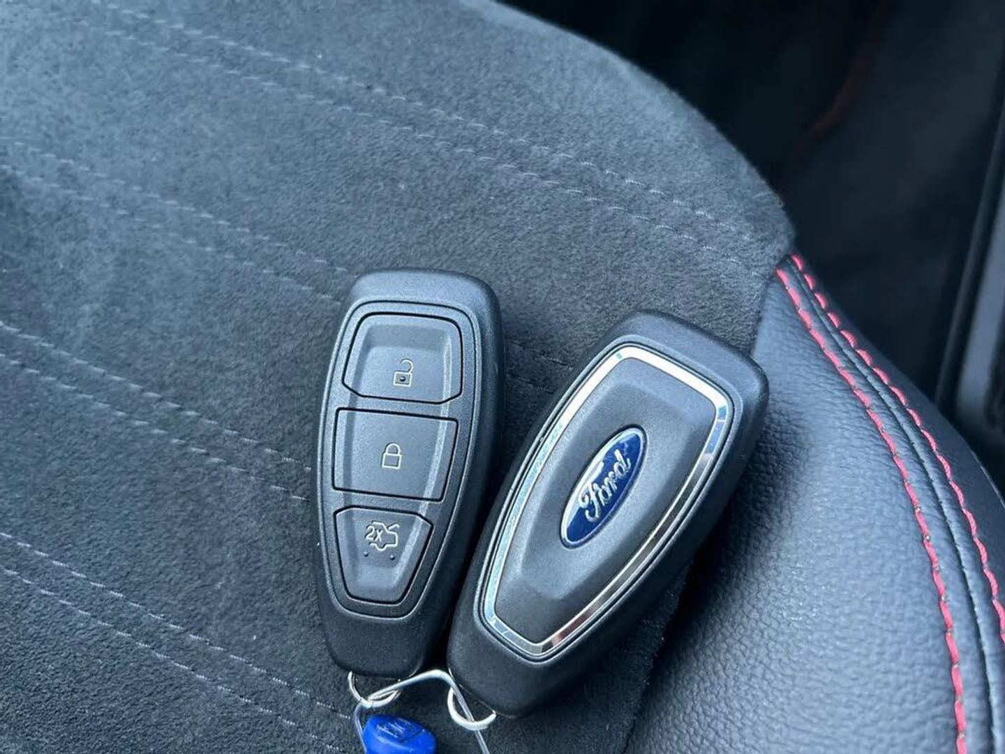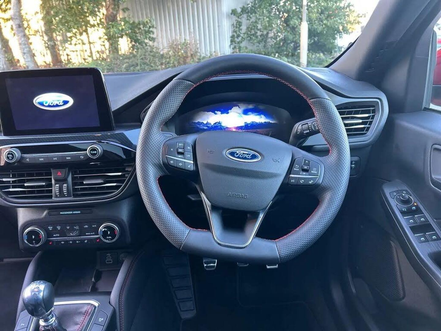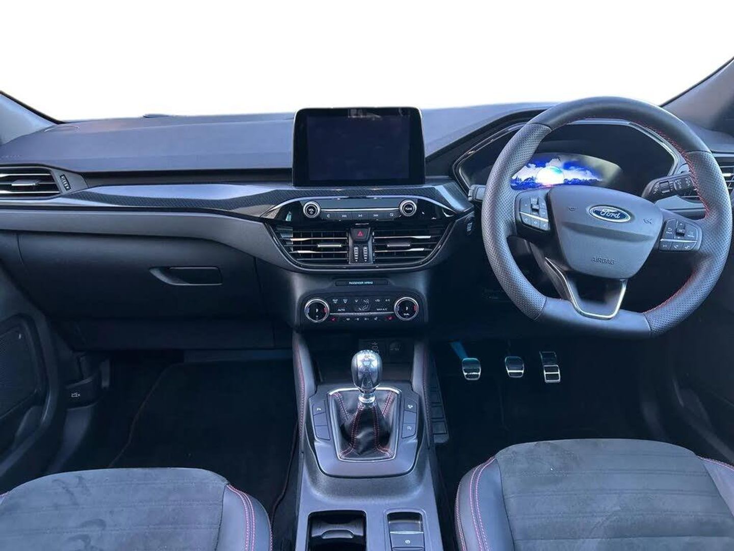 12.3" digital colour instrument cluster,Ford easy fuel,Ford SYNC 3 with 8" TFT LCD touchscreen, App Link, andriod auto/apple carPlay, emergency assistance and navigation with Ford pass connect,Front and rear parking sensors,Hands free power tailgate,Lane keeping aid with lane departure warning,Power assist steering,Rear view camera,Selectable drive modes,Service interval indicator,Sports suspension,Twist beam rear suspension,B&O premium audio system with 10 speakers and subwoofer, 2 USB ports, DAB radio/CD,Auto headlamps with high and low beam,Black roof rails,Body colour bumpers,Day/night rear view mirror,Front LED fog lamps,Large rear roof spoiler,LED daytime running lights,LED rear lights,Power folding, electrically adjustable and heated door mirrors with puddle lights,Power front/rear windows with global close,Power opening panoramic roof,Quickclear heated windscreen,Rain sensing wipers,Rear privacy glass,Rear side wing doors,Rear wiper,ST Line body styling kit with unique front and rear fascia and bumper, rear painted diffuser, front painted skid plates, dark mesh upper grille,ST Line front scuff plates,Third brake light,Twin exhausts,2nd row sliding seats with 60:40 split,Alloy pedals,Centre console with electronic parking brake,Dark headlining and pillars,Electronic automatic temperature control (EATC),Flat bottomed leather steering wheel in sensico with red stitching,Front and rear head restraints,Heated passenger and driver seats,Heated rear seats,Heated steering wheel,Partial premium touch Sensico with black cloth inserts and red stitching,Rear centre head restraint,Single front passenger seat,Sports seats,ST Line front and rear floor mats,ST Line gear knob,3x3 point rear seatbelts,Airbags - front driver/passenger, front and rear curtain,Drivers knee airbag,Electronic stability control (ESC) and ABS,Ford MyKey Gen 2 safety system,Manual child proof rear door locks,Post collision braking,Pre collision assist with autonomous emergency braking,Rear seat Occupancy alert,Red brake calipers,Tyre pressure monitoring system,Engine immobiliser,Keyless entry and Ford power start button (Keyless start),Locking wheel nuts,Remote powered central double locking doors,Thatcham category 1 alarm,Lucid Red,Mini Spare Wheel,Partial Sensico - Rapton Cloth - Black with Red Stitching,Wireless Charging