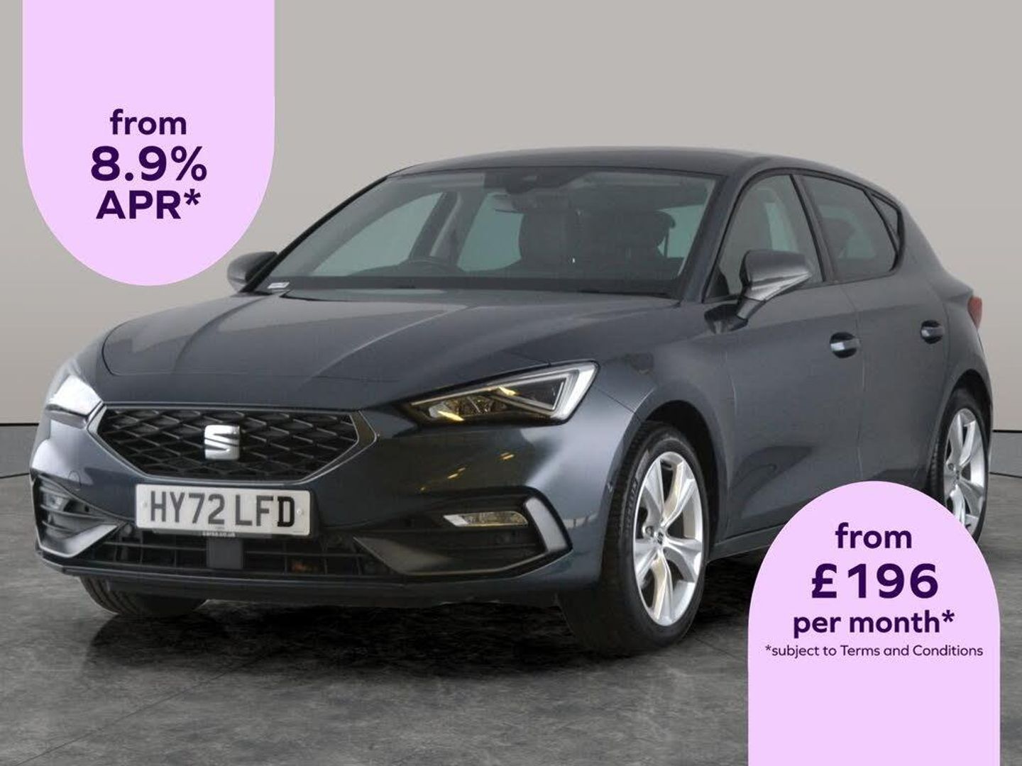 Experience the stylish Seat Leon FR, finished in sleek grey and equipped with advanced Park Assist, seamless Apple CarPlay, and dazzling LED headlights for a modern touch. Effortlessly navigate your journeys with built-in Sat Nav, and enjoy the comfort of climate control and keyless start. The spacious hatchback design, sporty 17in alloy wheels, and front and rear parking sensors combine practicality with a dynamic look. Stream your favourite music with Bluetooth audio for a great drive every time. 1 service recorded, last serviced on 01/11/2025 at 29,407 miles. MOT to 04/11/2026. Visit our website for service history, online valuation, full vehicle specification plus multiple images. This vehicle is VAT qualifying. Any feature/option specified here is from 3rd party data. We cannot guarantee the accuracy of any specification supplied by a 3rd party. We recommend that you physically check the specification of the vehicle on site prior to purchase. This information does not form part of the buying contract. Terms & Conditions apply. We have over 2,000 cars available from our 10 national branches, check our website to see all our stock. Our Trustpilot rating is 4.4/5 with over 9,000 reviews.