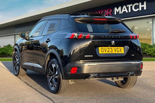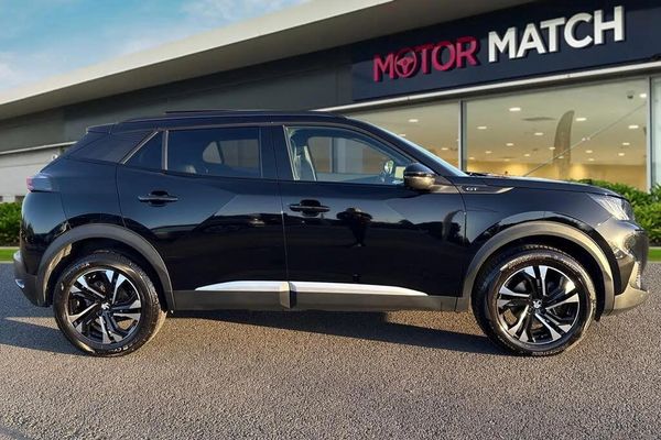 Alloys, MP3, Ambient Lighting, Advanced Safety, AC/Climate, Blind Spot Assist, Bluetooth, DAB, Hill Assist, Parking Sensor, Isofix, Apple CarPlay/Android Auto, Sat Nav, Touchscreen, Cruise Control, Push-Button Start;Available now at Motor Match Chester is this 2023 Peugeot 2008 1.2 PureTech GT which comes in a stunning Nera Black metallic paintwork! This vehicle boasts a full Peugeot service history, with the last completed at 17,502 miles and sits on stunning 17" alloy wheels for a fantastic look. The vehicles LED headlights, and daytime running lights ensure you're seen at all hours of the day, and the front and rear parking sensors, alongside the rear view camera is perfect for alerting you of any obstructions when maneuvering! The boot provides a great amount of storage space, with the option of folding the rear seats for any larger items and the interior is finished in a part leather upholstery for a stylish feel. You'll find ISOFIX mounting points on both outer rear seats, and the front seats can be heated for excellent comfort during the winter months. The panoramic sunroof floods the vehicle with natural light and the multifunctional steering wheel has mounted controls for audio functions, as well as the cruise control and speed limiter which is perfect for motorway driving! In terms of entertainment, you have the choice of the DAB and FM radio, or you can connect devices via Bluetooth and USB to listen to your own music. You can use the Bluetooth function to connect your mobile device to make and take phone calls whilst out on the go, and even stream apps via Apple Carplay/Android Auto. The satellite navigation allows you to plan routes and locate nearby points of interest...