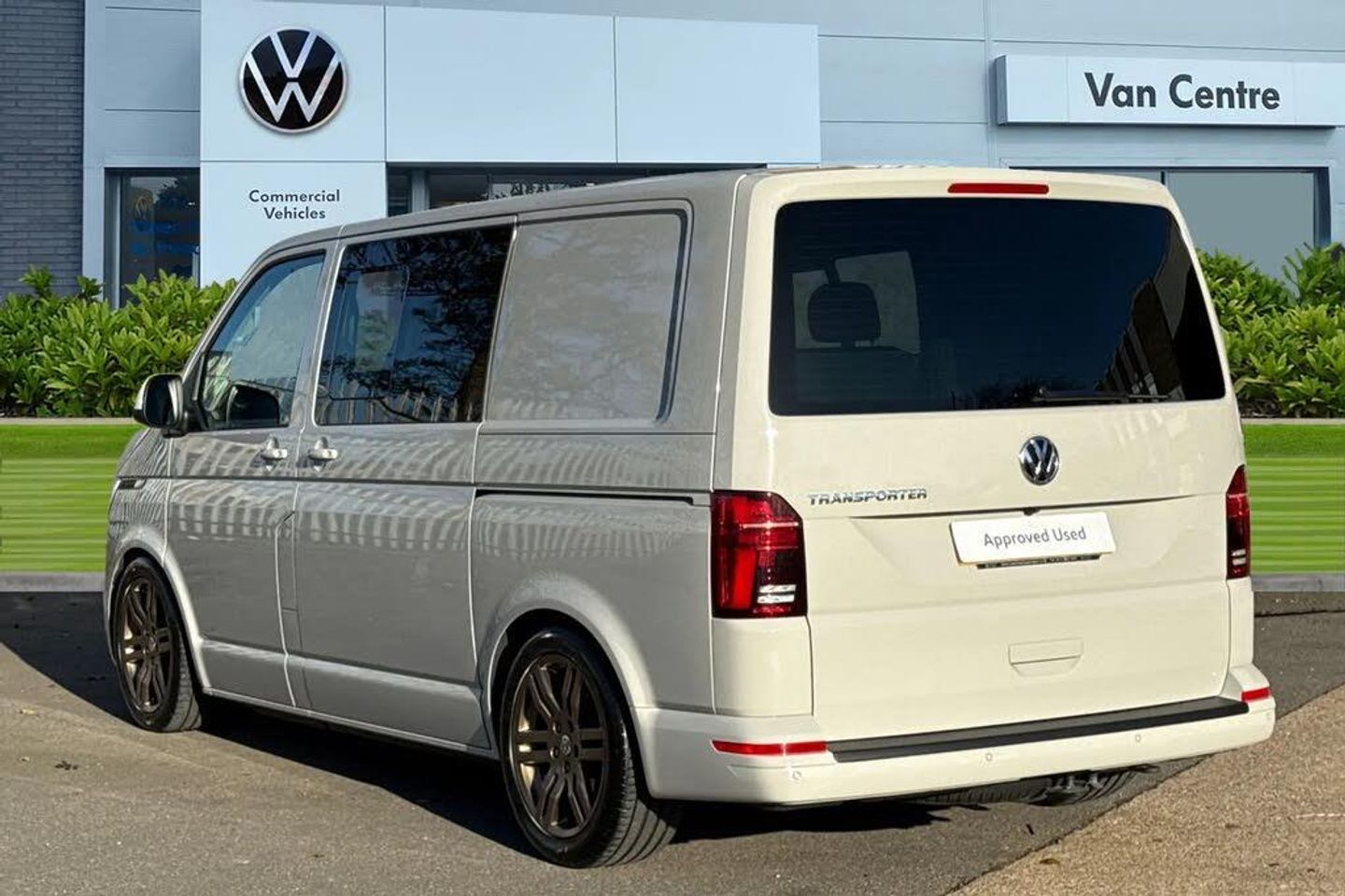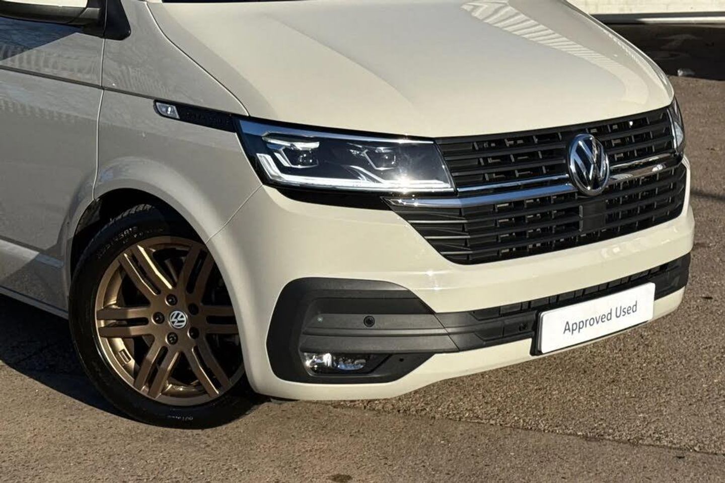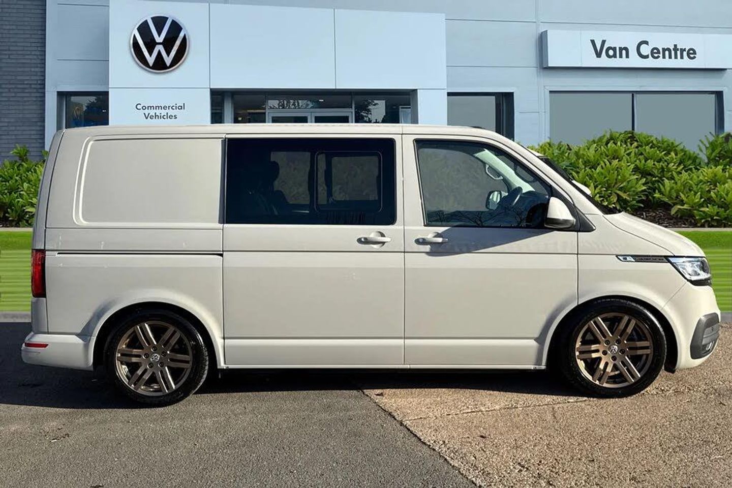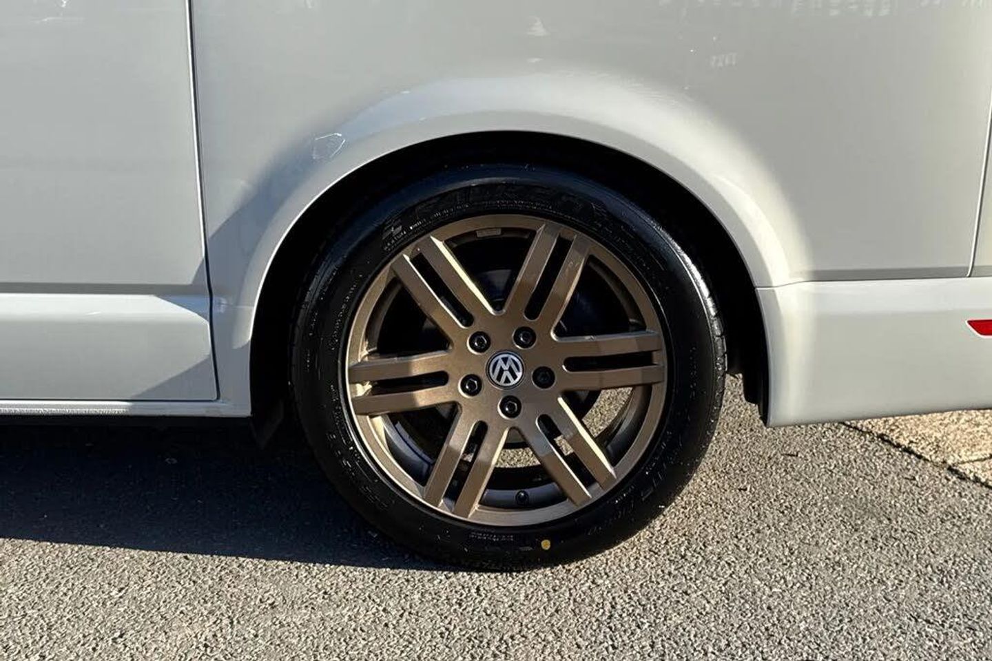 Ascot Grey-Solid paint,LED headlights with LED daytime running lights,Rear combination lamps,Adjustable suspension,Parking sensors front + rear,Rear view camera system,Twin sliding side load doors,Tailgate with heated rear window and wash wipe system,Adaptive cruise control,Leather trimmed,multifunction steering wheel,Lights + Vision package,2 bench seats on driver side and individual seat with easy entry on the passenger side in 2nd row seats,Passenger side swivelling seat,Fully insulated/sound deadening/carpet lined to rear,2 remote control folding keys,Thatcham category 1 cab alarm system,Solid - Ascot Grey,Bricks woven fabric - Titanium/Palladium black,18" VW Sportline alloy wheels in bronze,Steel spare wheel with original equipment tyre,Green heat insulating glass,Heated laminated windshield,Privacy glass in passenger compartment,Rear window with heated insulating glass,heated rear window wiper and washer system,Windshield wiper intermittent control with rain sensor for windshield wipers,16" chassis with 16" brake system,Radiator grille with 2 chrome trims,Transporter nameplate on the rear fender,Without adhesive film,Automatic headlight control,leaving home and manual coming home feature,Front fog lamps with cornering light,Illuminated steps in passenger/load compartment,Electronic stability control,ABS,ASR with deactivation button,electronic differnetial lock,hill start assist and brake assist system,Start/stop system with regenerative breaking,Adaptive cruise control including speed limiter and city emergency braking,Cross wind assist,Electromechanical speed sensitive power steering,height and longitudinally adjustable steering column,Front assist with autonomous emergency braking,Left convex exterior mirror,Power adjustable and heated,power folding,folding possible via vehicle key exterior mirrors,Right convex exterior mirror,3 point height adjustable seat belts on outer seats cab with electric pretensioners,Driver and front passenger airbag with front passenger airbag deactivation,Power operated child safety lock,Single tone horn,Warning buzzer and light for driver seat belt not fastened,Mobile phone interface,Without voice control,2 USB interfaces type C in dashboard,4 speakers with 2 tweeters and 2 woofers,Composition colour radio with 6.5" touchscreen,Digital radio reception (DAB+),Volkswagen app connect,Tailgate closing with unlatching from the inside,Tailgate with window aperture,Dimmable illuminated instruments,Driver alert with black and white multi function display plus,Headlight range control,Child seat anchors ISOFIX and top tether in 2nd row of seats,eCall emergency system,Forward collision warning front assist with autonomous emergency braking,70 L volume fuel tank,Diesel particulate filter,Dust/pollen filter,3 spoke leather wrapped multi function steering wheel,Additional sound deadening measures in cab and passenger compartment,Auto dimming breakaway interior rear view mirror,Comfort headliner in cab,hardboard roof trim in passenger and load compartment,Folding grab handles and storage compartments on cab seats,reading light,Glove compartment with illumination,Heavy duty tool kit and jack,Medium height for vehicles with window aperture hardboard side trim panels in passenger/load compartment,Refrigerant R134a,Rubber floor covering in passenger/load compartment with loading edge protection in rear,Standard lower part dashboard in palladium,Without partition,LED Interior lighting in load and passenger compartment,Interior plastic loading edge protection,Lashing rings for load restraint system,Comfort pack - Transporter,Exterior pack without fog light- Transporter,Non smoker pack - Transporter,Armrests for both front seats,Front seats on the right in 1st row of seat,Without seats in 3rd row of seats,Anti theft alarm system with interior monitoring in cab,backup horn and towing protection,Lockable wheel bolts