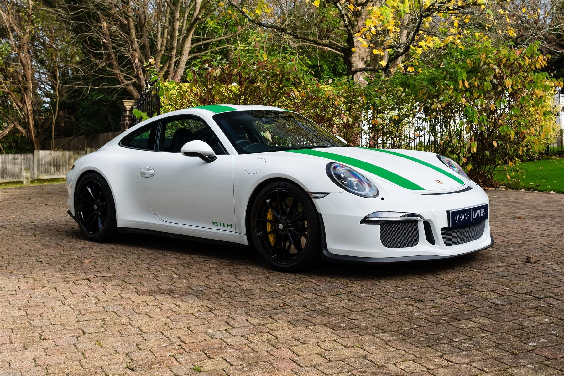 Supplied new via Porsche Centre Reading, finished in Pure White over a black leather interior and fitted with the following options: single-mass flywheel, heated seats, front axle lifting system, two-zone automatic climate control system, smoking package, mobile phone Bluetooth, Light Design Package, BOSE® Surround Sound System, DAB radio, six-disc CD/DVD autochanger, decorative stickers in green, floor mats with leather edging, 18-way electric Adaptive Sports Seats, automatically dimming mirrors with integrated rain sensors, Porsche Communication Management (PCM) system with navigation, 20-inch high-gloss black wheels, LED main headlights in black with Porsche Dynamic Light System (PDLS), clear glass taillights, Porsche Carbon Ceramic Brakes (PCCB), rear-axle steering, custom Zuffenhausen stitching, and a 911 R limitation numbered interior plaque.