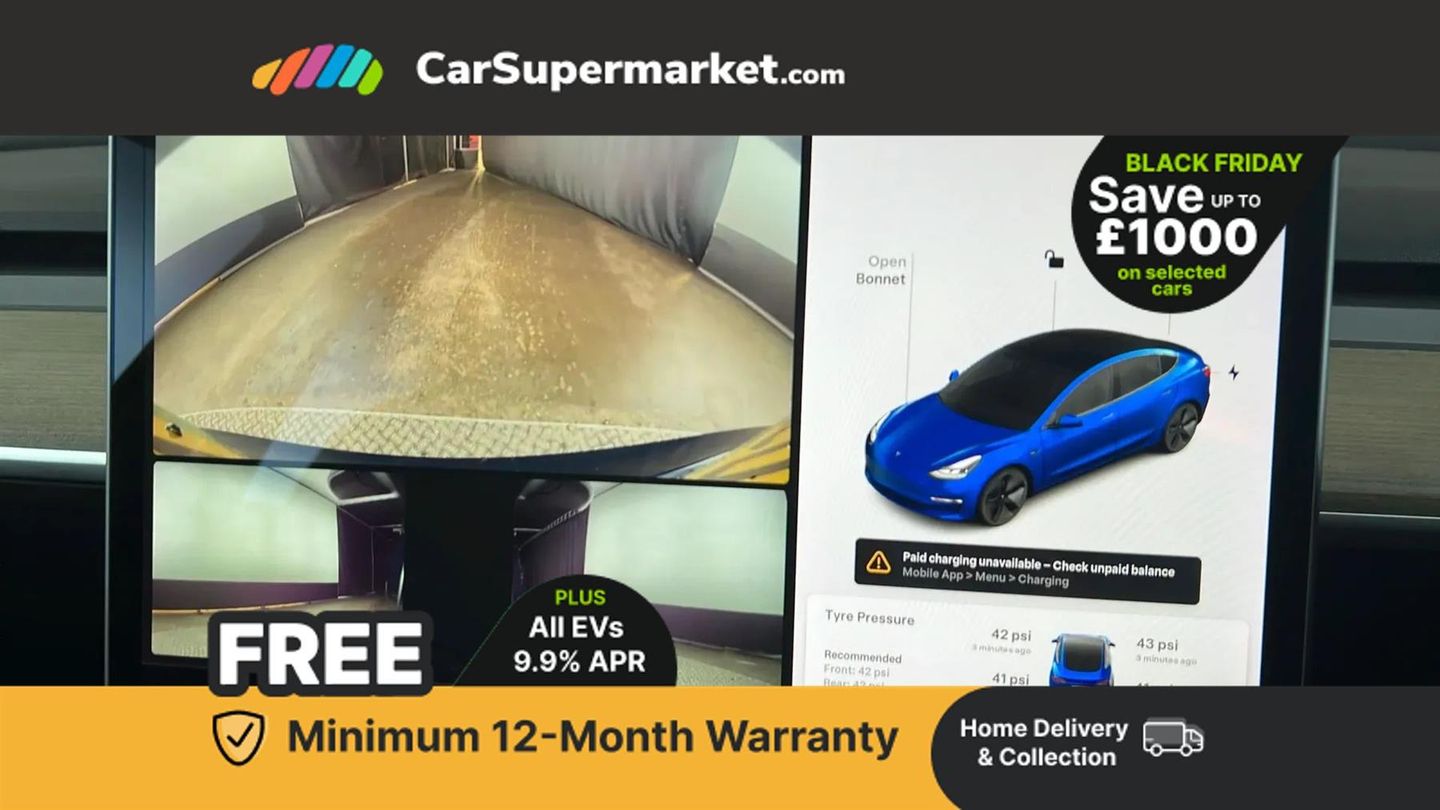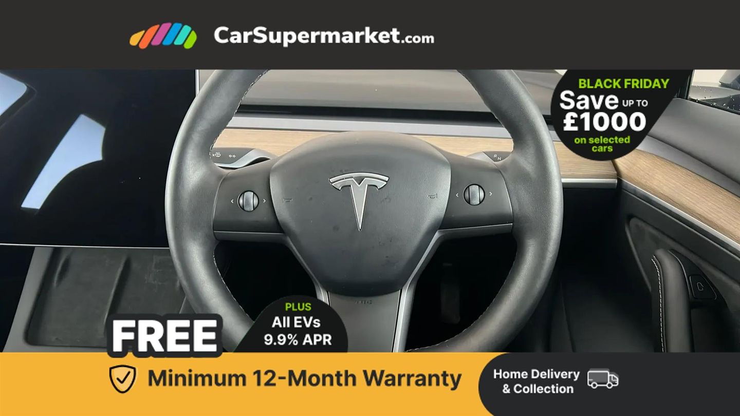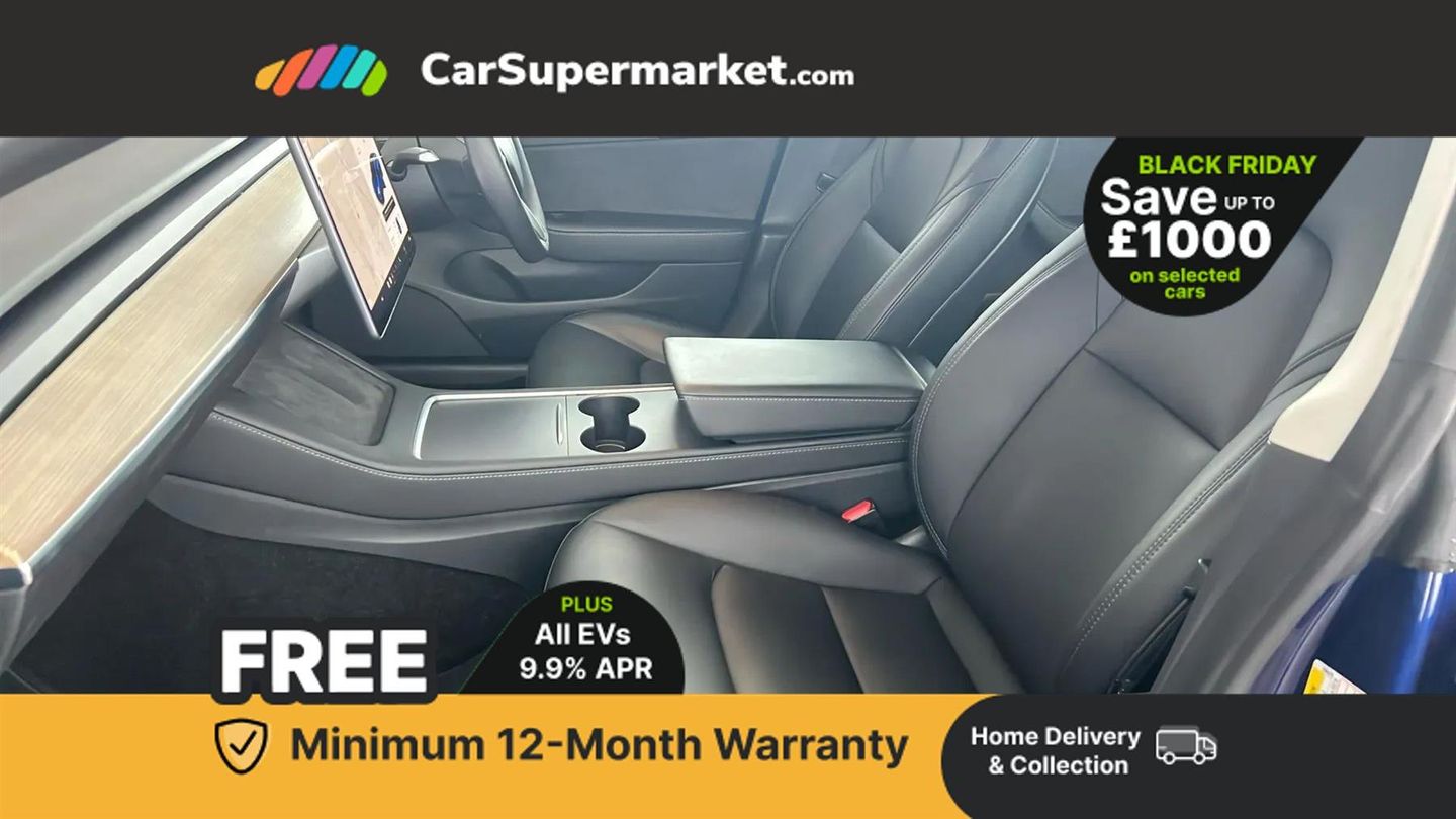 Adaptive cruise control,Adaptive steering,BLIS (Blind spot information system),Custom driver profiles,Electric assisted front and rear doors,Front parking sensor,Lane departure warning system,Mobile telephone preparation,Navigation system,PAS,Power lift tailgate,Rear parking sensor,Reversing camera,Service indicator,Software updates over WiFi,Speed limit recognition,Steer-by-wire technology,Traffic sign recognition,Trip computer,Voice activated controls,CCS charging connector (170Kw Max),Rear wheel drive,Tesla mobile connector + domestic adapter (British 3-pin),Type 2 connector (11Kw Max),15" Touchscreen,Audio remote control,Audio system with 8 speakers and limited Immersive Sound,DAB Digital radio,DVD System,Media storage,Music, FM radio and media over bluetooth connection,Steering wheel mounted controls,Tesla mobile app,Auto dimming rear view mirror,Auto dimming, power folding and heated side mirrors,Automated High beam assist,Automatic headlights and wipers,Body coloured bumpers,Electric front windows,LED daytime running lights,LED Headlights,LED rear lights,Rear electric windows,Satin black exterior trim,12-way power adjustable front seats with lumbar support,2 zone climate control,4 USB - C ports,60/40 split folding rear seats,Center console with storage, 2 cup holders and armrest,Driver and front passenger sunvisors with illuminated vanity mirrors,Front compartment with sliding lid,Front head restraints,Glovebox, lockable with illumination,Heated front seats,Isofix child seat anchor points,Map and reading lights,Metalised scroll wheels on steering wheel,Power adjustable steering wheel,Rear centre armrest, with 2 cup holders,Rear headrests,Satin black sill plates,Seat controls in graphite finish,Tinted glass roof with ultraviolet and infrared protection,Type 2 cable,3x3 point rear seat belts,6 airbags - Driver, front passenger, curtain and side airbags,ABS,Automatic emergency braking and collision avoidance warning,ESC - Electronic Stability Control + traction control,ESP,Tyre pressure monitor,Alarm,Dashcam,Immobiliser,Keyless driving and keyless entry,Remote central locking,Wireless phone charging,Premium open pore wood decor,Deep Blue