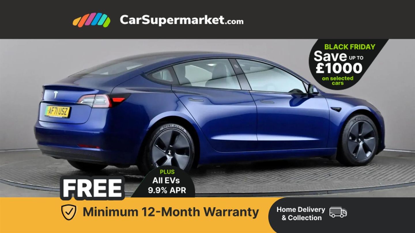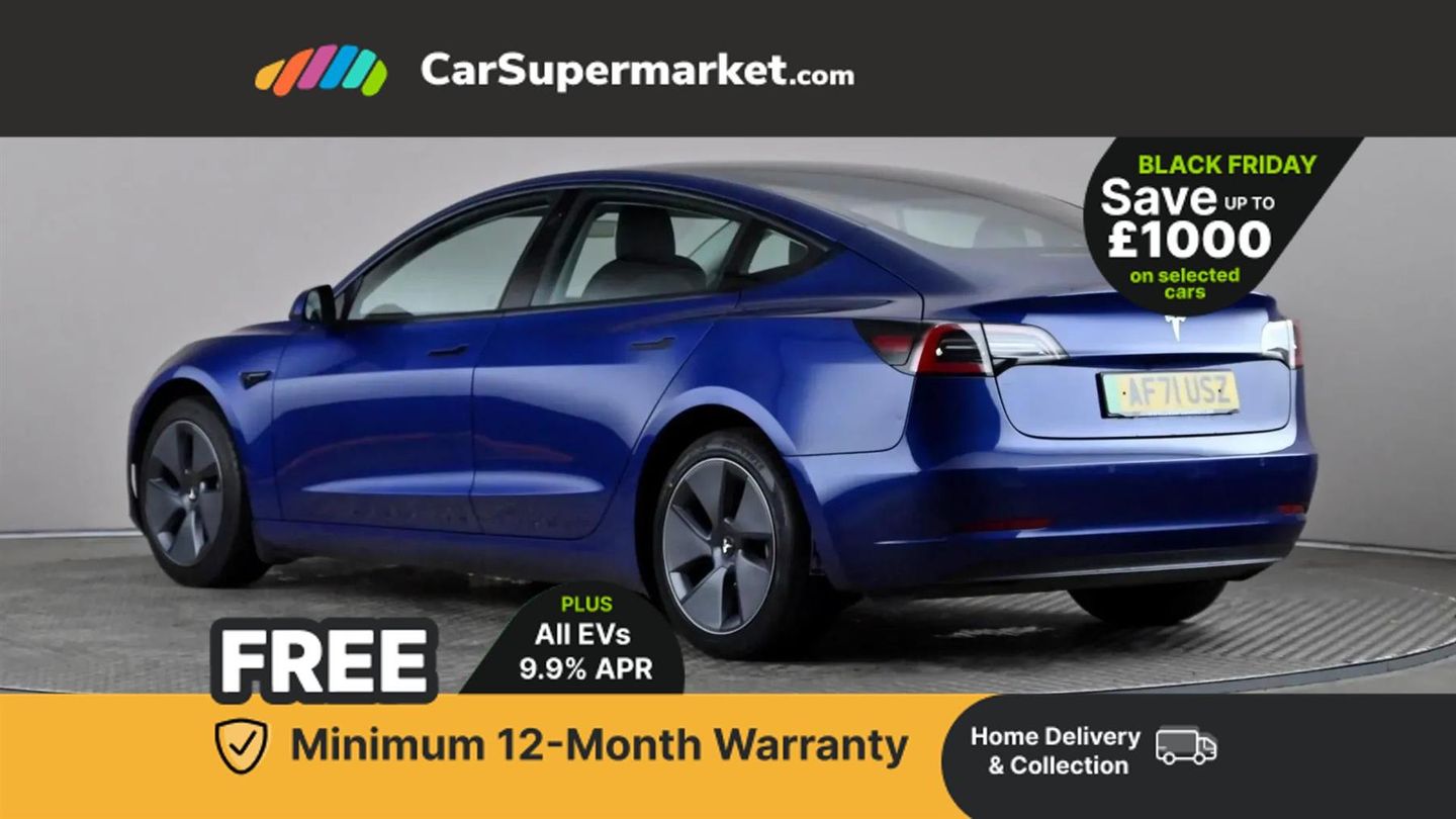 Cruise Control, Adaptive Cruise Control, Blind Spot Monitoring, Lane Departure Warning, Sat Nav, Traffic Sign Recognition, 15" Touchscreen, Digital Radio, Bluetooth, Heated Front Seats, Keyless Entry, Wireless Phone Charging;This 2021 Tesla Model 3 Standard Range Plus presents an exceptional ownership proposition with its single owner and remarkably low mileage of just 31,953 miles. As an electric vehicle, it offers an impressive maximum range of 278 miles from its 53 kWh battery, with a full charge at home taking approximately 7 hours and 10 minutes using a 7kW charger. For longer journeys, rapid charging to 80% can be achieved in as little as 29 minutes at a public charging station. This particular Model 3 benefits from a clear vehicle history check and has an MOT valid until September 2026, providing peace of mind for its next owner. Beyond its excellent provenance, this Tesla Model 3 is equipped with desirable features that enhance the driving experience. These include front and rear parking sensors with parking assistance, adaptive cruise control for more relaxed journeys, and bright LED headlights for improved visibility. The 2 zone climate control ensures comfort for all occupants, and the generous boot space offers ample practicality for everyday needs and longer trips. These elements combine to make this Model 3 a compelling choice, offering a refined and technologically advanced electric driving experience.