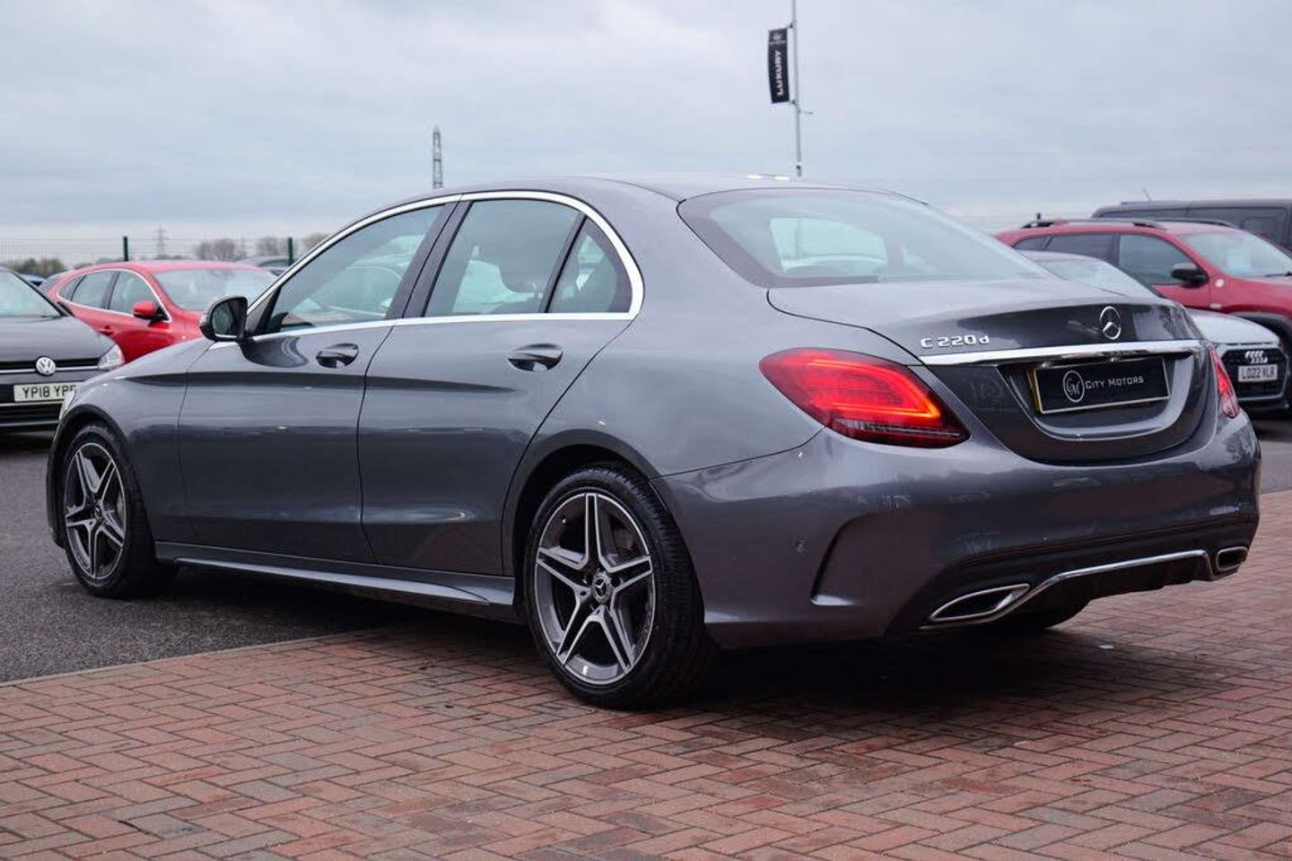 Finished in a sleek and timeless Grey, the C-Class exudes an aura of elegance and modernity. Its striking AMG Line styling enhances its dynamic presence on the road, ensuring you turn heads wherever you go. The aerodynamic contours and bold grille are complemented by the iconic Mercedes-Benz emblem, a symbol of luxury and prestige.