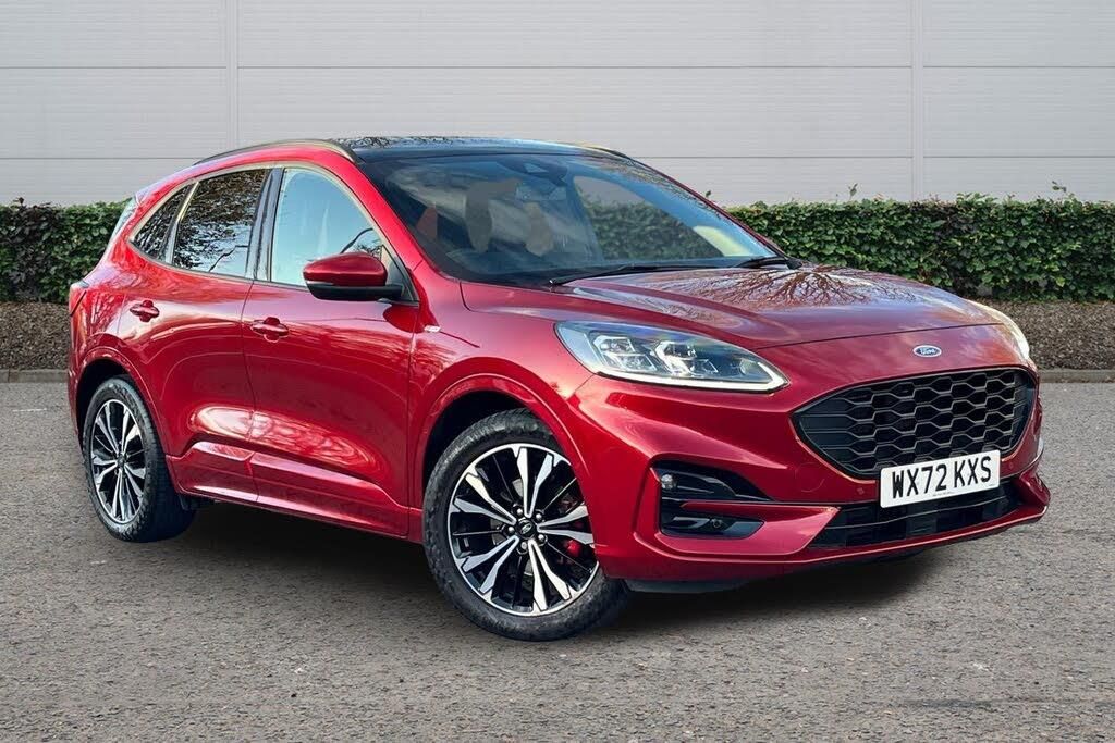 Partial Sensico - Rapton Cloth - Ebony with Red Stitching, 10-Way Power Adjustable Drivers Seat, 12V Power Point in Floor Console, 12v Power Point in Cargo Area, 12v Socket - Voltage Regulator, 19in Alloy Wheels - 5x2 Spoke - High Gloss - Machined, 2nd Row Sliding Seats, 8-Way Manual Passenger Seat including Lumbar Support and Height Adjust, ABS - Anti-Lock Braking System with Enhanced Electronic Stability Control - ESC with Traction Control - Emergency Brake Assist - EBA - Hill Start Assist, Air Conditioning - Electronic Automatic Temperature Control - EATC, Airbag - Driver and Front Passenger Side, Airbag - Front Passenger Deactivation Switch, Airbags - Driver and Front Passenger, Airbags - Front and Rear Side Curtain, Aluminium - Finish Front Scuff Plates with ST-Line Script, Aluminium Foot Pedals - ST-Line Design, Ambient Lighting, Auto Dimming Rear View Mirror, Auto Wipers, Automatic Door Relocking, Automatic Headlights with Auto High-Low Beam, Black Roof Rails, Centre Console with Electronic Parking Brake, Cruise Control with Intelligent Speed Limiter, Driver and Passengers Sun Visor with Illumination, Dual Exhaust Tailpipes with Unique Brushed Stainless Steel Finish, EPAS - Electric Power Assisted Steering, Electric Childproof Locks on Rear Doors, Electric Parking Brake with Auto Hold, Electrical Charging Point in Second Row, Engine Immobiliser - SecuriLock, Exterior Door Handles - Body Coloured, Ford Easy Fuel System, Ford Keyfree System - Keyless Entry with Ford Power Starter Button, Ford SYNC3 DAB Navigation System, Front Lower Grille - Ebony Black Mesh, Front Seats - 2-Way Manual Height Adjust Passive Head Restraints, Front Seats - Drivers and Passengers Seatback Map Pockets, Front Upper Grille - Carbon Black Honeycombe Mesh and High-Gloss Black Surround, Front Windows - Laminated Glass, Front and Rear Bumper - Sporty Body Colour with Rear Ebony High-Gloss Insert, Front and Rear Floor Mats with Red Stitching, Front and Rear Parking Sensors, Full Digital 12.3in Instrument Cluster, Full LED Headlamps, Gear Shift - Unique Sensico-Trimmed Knob with Satin Aluminium Insert and Red Gaiter Stitching, Glovebox Lights, Handsfree Power Tailgate, Headlights - Automatic Follow Me Home Lighting, Headlights - Levelling System - Manual, Headlights - Unique Bending, Headliner - Sports Dark, Heated Driver and Passenger Seats, Heated Rear Seats, Heated Steering Wheel, Heated and Power Folding Door Mirrors with Puddle Lights, High-Mounted Brake Light, Kuga Badge, LED Daytime Running Lights, LED Fog Lights - Front, Lane Keeping Aid with Lane Departure Warning, Large Rear Spoiler, Load Compartment - Lights, Load Compartment - Tie Down Hooks, Load Compartment Carpet, Locking Wheel Nuts, Lower Bodyside Moulding - Body Colour, Lower Door Frame Beltline - Black, Mini Overhead Console with Sunglasses Holder Bin, MyKey, Power Door Deadlocks - Double Locking, Power Door Locks, Power Opening Panoramic Roof, Pre-Collision Assist with Autonomous Emergency Braking - Camera Detection, Privacy Glass, Quickclear Heated Windscreen, Rear Duct on B-Pillar, Rear Lights - LED, Rear Seat - 60-40 Split Folding Seats, Rear Seat Centre Head Restraint, Rear Seats - 2-Way Head Restraint Up-Down, Rear Seats - Folding Centre Armrest with Integrated Cup Holder, Rear Seats - Sliding Seat Adjust Tracks - Fore-Aft, Rear View Camera, Red Brake Calipers, Remote Tailgate Release, Removable Package Tray, Rocker Panel Mouldings - Body Colour - ST-Line Design, ST-Line Badge on Left and Right Side Wings, ST-Line Bodystyling Kit, ST-Line Front and Rear Bumper Moulding - Body Colour, Seat Belt - Drivers - Front Passenger and Rear Seat Belt Reminder Alert, Seat Belts - Front 3-Point Seatbelts with Load Limiter, Seat Belts - Front Height Adjustable, Seat Belts - Rear Retractable Rear Belt - 3-Point All Positions, Seats - ISOFIX Mounting Provision for Child Seats - Outer Seats Only, Selectable Drive Modes, Single Rear Fog Light, Sports Seats, Steering Column - Locking Electric, Steering Column - Rake and Reach Adjustment, Steering Wheel - ST-Line Sports-Style Perforated Sensico-Trimmed with Red Stitching, Suspension - Sports, Tailgate Handle - Body Colour, Tether Anchorage - Two Rear Seat Top Tether Anchorage Restraints, Thatcham Category 1 Perimeter and Volume Sensing Alarm, Tow Hooks - Front and Rear, Trip Computer, Tyre Inflation Kit, Tyre Pressure Monitoring System, Upper Door Frame Beltline - Black, Windows - Power Front and Rear with Global Closing, Winter Pack, Wiper - Intermittent Rear Window Wiper, Wrong Way Alert, eCall
