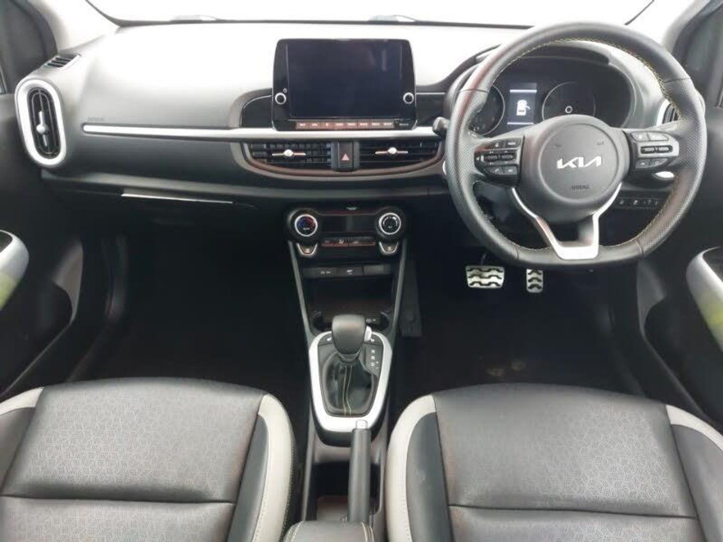 8" touch screen satellite naviagtion with RDS and DAB with telematics, Apple car play/Android Auto with voice control, Cruise control + speed limiter, Wireless Smartphone charger, Rear parking sensors, Advanced Driver Assistance Pack - Picanto, USB ports for connection of a media device, Steering wheel mounted controls, Bluetooth with music streaming, 6 speaker audio system, Automatic headlight control system, Day/night rear view mirror, Electric adjustable/heated/folding door mirrors with LED indicators lights, Front and rear electric windows with drivers's auto up/down function, Front fog lights, LED daytime running lights, LED rear fog lights, LED rear lights, Privacy glass - Rear windows and tailgate, Rain sensor, Welcome and follow-me home light functionality, 60/40 split/folding 2nd row of seats, 3 seat bench in 2nd row, Automatic air conditioning, Centre Console with Storage Box and Sliding Armrest, Faux leather upholstery, Heated front seats, Heated steering wheel, ISOFIX Child seat top tethers and anchor fixings, Slide/reclining front seats, Leather trimmed steering wheel and gearshift, Automatic unlocking of doors in case of impact, Dual front airbags, Front passenger airbag cut-off switch, Hill hold control, Knee airbags, Side impact protection, Twin curtain airbags, Twin front side airbags, Smart key with engine start/stop button, Engine immobiliser, Anti theft alarm, 16" alloy X-Line wheels