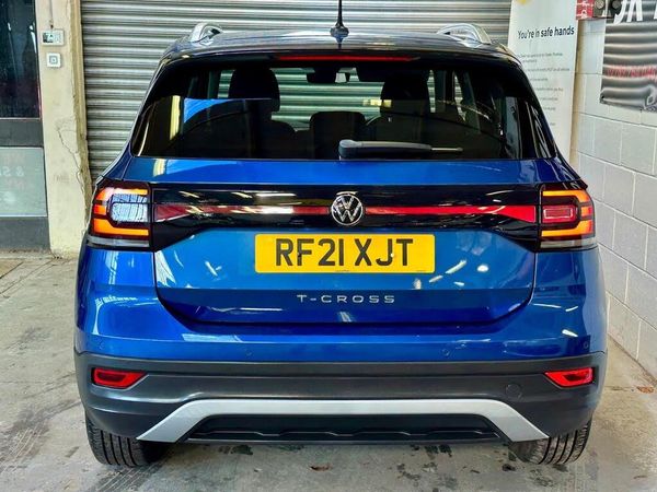Ready to drive away today one owner from new, showroom condition Volkswagen T-Cross 1.0 TSI SEL DSG Euro 6 (s/s) 5dr. Just been serviced and through MOT, no advisories. Looks great finished in metallic Reef blue, 17 alloy wheels, privacy glass, LED lights and subtle rear roof spoiler. Interior makes for a modern experience featuring half leather trim, titan black pearl finish dashboard and surrounds, touchscreen multimedia featuring apple car play/android mirror, Bluetooth connectivity, sat nav, DAB radio, front and rear parking sensors with on screen parking aid, multifunction leather steering wheel, active cruise control with lane departure and collision warning system. 2 keys, buy with confidence from an award winning, AA Approved dealership with a variety of warranty products available. Viewing available seven days a week by appointment (evening and weekends available), nationwide delivery. Same day finance decisions in house at competitive rates, nil deposit options, please inquire with a simple call to drive away today. Drive away insurance, part exchange welcome, top prices paid. Member of the Motor Trade trading standards and motoring ombudsman code of practice.