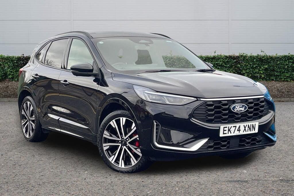 20in Alloy Wheels - 5x2 Spoke - Absolute Black - Machined, Luggage Compartment Mat, Luggage Compartment Net, Technology Pack, 12-Way Ergonomic Power Adjust Driver's and Passenger's Seat, 12V Power Point in Floor Console, 12v Power Point in Cargo Area, 12v Socket - Voltage Regulator, 19in Alloy Wheels - ST-Line- Ebony Black - Machined Finish, 2nd Row Sliding Seats, 360 Degree Camera, ABS - Anti-lock Braking System, Acoustic Vehicle Alert System - AVAS, Adaptive Cruise Control, Air Conditioning - Electronic Automatic Temperature Control - EATC, Airbag - Driver and Front Passenger Side, Airbag - Front Passenger Deactivation Switch, Airbags - Driver and Front Passenger, Airbags - Front and Rear Side Curtain, Aluminium - Finish Front Scuff Plates with ST-Line Script, Aluminium Foot Pedals - ST-Line Design, Ambient Lighting, Auto Dimming Rear View Mirror, Auto Wipers, Automatic Door Relocking, Black Roof Rails, Centre Console with Electronic Parking Brake, Child Locks - Manual on Rear Doors, Cross Traffic Alert, Digital Colour 12.3in Instrument Cluster, Driver Assistance Pack, Driver and Passengers Sun Visor with Illumination, Dual Exhaust Tailpipes with Unique Brushed Stainless Steel Finish, EPAS - Electric Power Assisted Steering, Electric Parking Brake with Auto Hold, Electrical Charging Point in Second Row, Engine Immobiliser - SecuriLock, Enhanced Electronic Stability Control - ESC with Traction Control - Emergency Brake Assist - EBA - Hill Start Assist - HSA and Trailer Sway Control, Exterior Door Handles - Body Coloured, Ford Easy Fuel System, Ford Keyfree System - Keyless Entry with Ford Power Starter Button, Ford SYNC 4 Navigation, Front Seats - 2-Way Manual Height Adjust Passive Head Restraints, Front Seats - Drivers and Passengers Seatback Map Pockets, Front Seats - Sports Style V-shape with High Bolster, Front Windows - Laminated Glass, Front and Rear Bumper - Sporty Body Colour with Rear Ebony High-Gloss Insert, Front and Rear Floor Mats with Red Stitching, Front and Rear Parking Sensors, Full LED Headlamps, Gearshift - Automatic - Electronic Rotary Gearshift Dial, Glovebox Lights, Handsfree Power Tailgate, Headlights - Automatic Follow Me Home Lighting, Headlights - Automatic High Beam Assist, Headlights - Levelling System - Manual, Headlights - Unique Bending, Headliner - Sports Dark, Heated and Power Folding Door Mirrors - Puddle Lights - Memory Function - Camera, High-Mounted Brake Light, Kuga Badge, LED Daytime Running Lights, LED Fog Lights - Front, Lane Keeping Aid with Lane Departure Warning, Large Rear Spoiler, Load Compartment - Lights, Load Compartment - Tie Down Hooks, Load Compartment Carpet, Locking Wheel Nuts, Lower Bodyside Moulding - Body Colour, Lower Door Frame Beltline - Black, Mini Overhead Console with Sunglasses Holder Bin, MyKey, Pop-Out Door Edge Protectors, Power Door Deadlocks - Double Locking, Power Door Locks, Power Opening Panoramic Roof, Pre-Collision Assist with Autonomous Emergency Braking, Quickclear Heated Windscreen, Rear Duct on B-Pillar, Rear Lights - LED, Rear Privacy Glass, Rear Seat - 60-40 Split Folding Seats, Rear Seat Centre Head Restraint, Rear Seats - 2-Way Head Restraint Up-Down, Rear Seats - Folding Centre Armrest with Integrated Cup Holder, Rear Seats - Sliding Seat Adjust Tracks - Fore-Aft, Red Brake Calipers, Remote Tailgate Release, Removable Package Tray, Rocker Panel Mouldings - Body Colour - ST-Line Design, ST-Line Badge on Left and Right Side Wings, ST-Line Bodystyling Kit, ST-Line Front and Rear Bumper Moulding - Body Colour, Seat Belt - Drivers - Front Passenger and Rear Seat Belt Reminder Alert, Seat Belts - Front 3-Point Seatbelts with Load Limiter, Seat Belts - Front Height Adjustable, Seat Belts - Rear Retractable Rear Belt - 3-Point All Positions, Seats - ISOFIX Mounting Provision for Child Seats - Outer Seats Only, Selectable Drive Modes, Single Rear Fog Light, Standard Home Charging Cable - 3-Pin Domestic Socket 230V, Steering Column - Locking Electric, Steering Column - Rake and Reach Adjustment, Steering Wheel - ST-Line Sports-Style Perforated Sensico-Trimmed with Red Stitching, Suspension - Sports, Tailgate Badge - PHEV - Plug-In-Hybrid, Tailgate Handle - Body Colour, Tether Anchorage - Two Rear Seat Top Tether Anchorage Restraints, Thatcham Category 1 Perimeter and Volume Sensing Alarm, Tow Hooks - Front and Rear, Trip Computer, Tyre Inflation Kit, Tyre Pressure Monitoring System, Upper Door Frame Beltline - Black, Windows - Power Front and Rear with Global Closing, Winter Pack, Wiper - Intermittent Rear Window Wiper, Wrong Way Alert, eCall