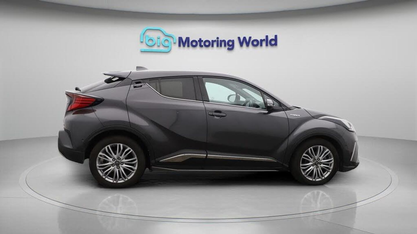 Leather Seats,Apple CarPlay-Our Toyota C-HR is finished in Grey. Specification includes a range of fantastic features including Leather Seats, Apple CarPlay, Adaptive Cruise Control, Lane Assist, Android Auto, Satellite Navigation, Privacy Glass, Heated Seats, Rear View Camera, Heated Steering Wheel Specification information is supplied by CAPHPI and may vary to the actual car. This data does not form any part of a buying contact. Please check specification prior to purchase in-store. The MOT is valid until August 2026, visit bigmotoringworld.co.uk for more photos, a 360 tour, service history and a free HPI report.Were BIG on peace of mind and this Grey Toyota C-HR has completed our comprehensive 200 point inspection and passed all checks. Its ready for you to drive away with immediate collection in-store. We include a 90-day warranty as standard plus an option to extend for up to 3 years.Reserve this car exclusively for you, safely and securely at bigmotoringworld.co.uk, with a fully refundable £99 deposit. Test drive before you buy, with no commitment, no hassle and a completely haggle free experience. Still searching and want to see thousands more cars? We are BIG on choice with over 8000 cars to choose from.Visit our award winning web site bigmotoringworld.co.uk.Were Big Motoring World and were BIG on what matters to you.
