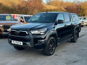 PRICE IS £26950 + 20% VAT **ANNUAL ROAD TAX ONLY £345** FANTASTIC CONDITION EXAMPLE THROUGH OUT WITH FULL SERVICE HISTORY AND THE ADDED BENEFIT OF BEING FITTED WITH A HARD TOP REAR CANOPY WITH BUILT IN CENTRAL LOCKING AND FRONT VENTING WINDOW WORTH AROUND £2000 PLUS TOW BAR AND LOAD LINER PROTECTION ALL MUST HAVES FOR MANY PICK-UP USERS, SUPPLIED WITH TWO SETS OF KEYS... This flag ship model Hilux boasts a full service history with its last service completed in April 2025 and an MOT valid until September 2026, the 2021 Toyota Hilux 2.8 D-4D Invincible X Auto 4WD Euro 6 (s/s) 4dr represents excellent provenance. This single owner vehicle features a robust 2.8 litre Euro6 diesel engine delivering 201 bhp, paired with a smooth automatic transmission and capable four wheel drive including a rear differential lock. The Invincible X trim level ensures a premium experience with its full leather interior further enhanced by a JBL premium sound system with 9 speakers, Adaptive cruise control which is fast becoming a must have for today's busy roads, LED headlights for superior visibility, and a rear view camera for effortless parking plus front and rear parking sensors. Smartphone integration, including Apple CarPlay and Android Auto, keeps you connected on the go, while the fitted towbar with 13 pin wiring offers a substantial towing weight of 3500 kg., , , , ** Click and Collect or Home Delivery Available.** Competitive finance packages available. Most part exchange