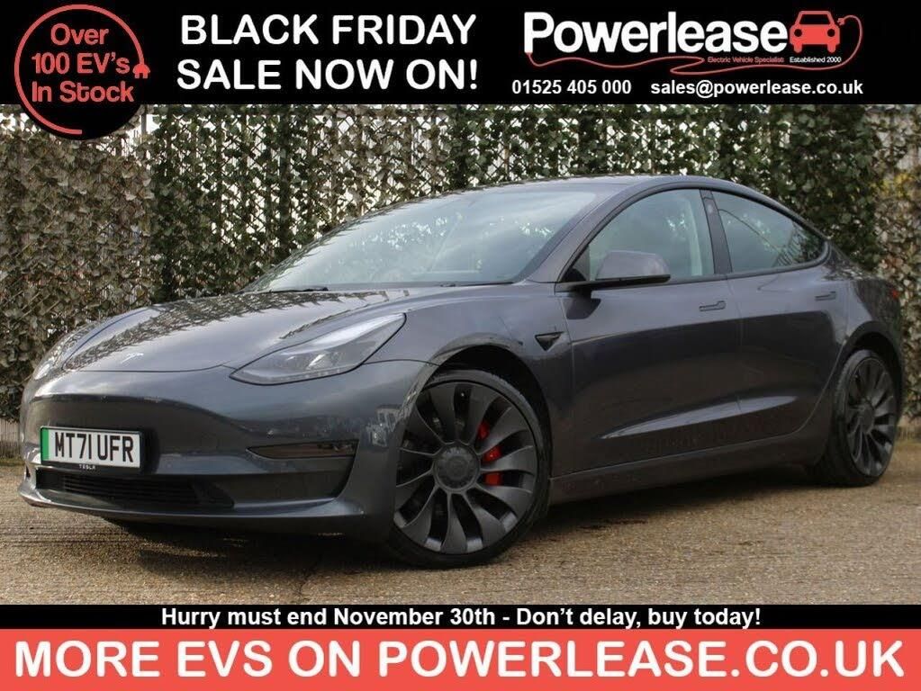 **94.7% BATTERY HEALTH** This 2021 Tesla Model 3 Performance boasts exceptionally low mileage for its age, having covered just 17,464 miles with only one owner. As an electric vehicle with Four Wheel Drive, this Performance variant offers a compelling blend of advanced technology and dynamic capability. It features a substantial 82 kWh battery, providing a maximum range of 340 miles when new, and can be fully charged at home using a 7kW charger in approximately 12 hours. For faster charging on the go, it can reach 80% capacity from empty in as little as 26 minutes at a compatible public charging station. The driving experience is further enhanced by notable features such as Full Self-Driving Capability, Park Assist Camera with front sensors, and Keyless Entry with remote app control. Adaptive Cruise Control comes as standard, ensuring a more relaxed journey. The acceleration is a standout aspect, with the Model 3 Performance capable of reaching 0-60mph in an impressive 3.1 seconds, demonstrating its superior performance compared to other vehicles in its class. BATTERY HEALTH CHECK AVAILABLE ON REQUEST | SPECIALIST EV EXTENDED WARRANTIES | ALL VEHICLES FULLY INSPECTED | ALL VEHICLES SERVICED & MOT'ED | HPI CHECKED AND CERTIFIED | FINANCE AVAILABLE | PART EXCHANGE AVAILABLE | CLICK AND COLLECT AVAILABLE | HOME DELIVERY AVAILABLE | BUY ONLINE VIA OUR WEBSITE WWW.POWERLEASE.CO.UK | IN BUSINESS FOR OVER 20 YEARS EST 2000 |