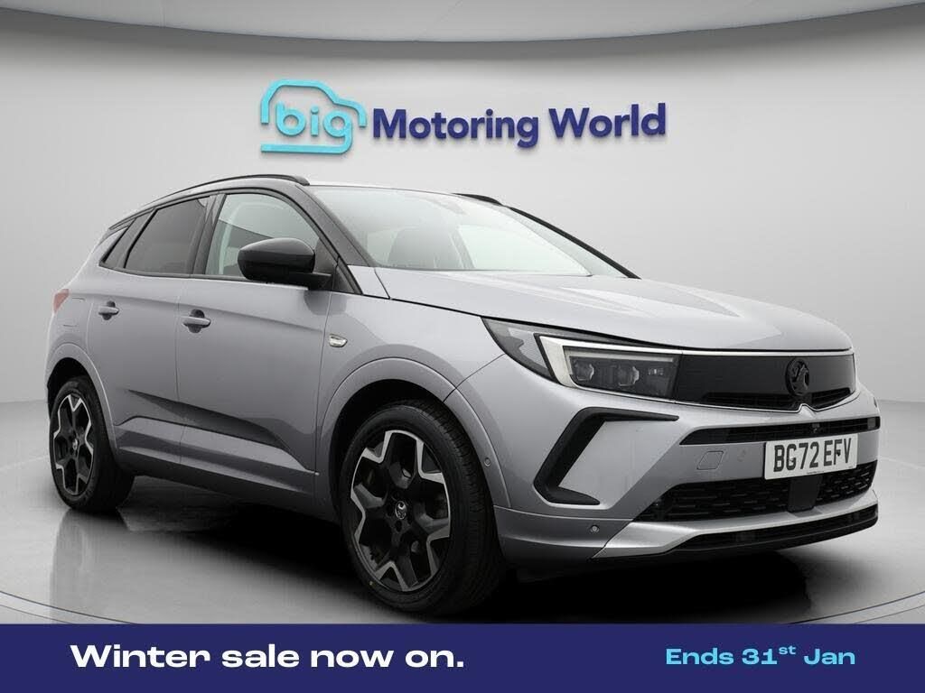 19'' Alloy wheels,Part Leather-Our Vauxhall Grandland comes with optional extras worth £600. Specification includes a range of fantastic features including 19'' Alloy wheels, Part Leather Seats, Apple CarPlay, Adaptive Cruise Control, Android Auto, Satellite Navigation, Privacy Glass, Heated Windscreen, Rear View Camera, Heated Steering Wheel Specification information is supplied by CAPHPI and may vary to the actual car. This data does not form any part of a buying contact. Please check specification prior to purchase in-store. The MOT is valid until September 2026, visit bigmotoringworld.co.uk for more photos, a 360 tour, service history and a free HPI report.Were BIG on peace of mind and this Grey Vauxhall Grandland has completed our comprehensive 200 point inspection and passed all checks. Its ready for you to drive away with immediate collection in-store. We include a 90-day warranty as standard plus an option to extend for up to 3 years.Reserve this car exclusively for you, safely and securely at bigmotoringworld.co.uk, with a fully refundable £99 deposit. Test drive before you buy, with no commitment, no hassle and a completely haggle free experience. Still searching and want to see thousands more cars? We are BIG on choice with over 8000 cars to choose from.Visit our award winning web site bigmotoringworld.co.uk.Were Big Motoring World and were BIG on what matters to you.