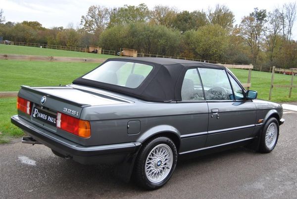 Here we have an outstanding example of this beautifully built 1990 E30 325i Manual Convertible finished in Dolphin Grey Metallic with Black Leather Sport Seats. Supplied new by Godfrey Hall LTD BMW on the 28th of October 1990. This vehicle comes along with a large history file including the original service book / book packs and the original bill of sale from new and even wearing its original Godfrey Hall BMW number plates ! Prior to sale this car will have a pre delivery inspection through our workshop including a full service, Cambelt replacement and a fresh MOT. Leather-covered sport sport wheel 380 mm BMW light alloy wheel, cross spoke 29 Dechromed Black leather Sport seats Shadow-Line Therm insulated glass green Hardtop-preparation Warning triangle and first aid kit Headrests mechanically adjustable, rear On-board computer II with remote control Great Britain/Ireland version A truly outstanding example that not only represents itself remarkably well cosmetically inside and out but also drives beautifully on the road. A great opportunity to purchase this usable and reliable modern classic with examples such as this becoming hard to duplicate. James Paul Car Sales is a family run business in a small village of Bucks Green conveniently situated on the Surrey and Sussex border. Established for over 35 years every car we offer is carefully hand selected and will come with a comprehensive provenance check. All of our vehicles are subject to a thorough pre delivery inspection through our workshops including a fresh MOT and service where required. Please ask us about our extremely competitive finance packages or Visit our website www.jamespaul.co.uk to create your own Finance Quote and Apply to help you fund your new car. Part exchanges welcome either way if you are looking to trade up or down.