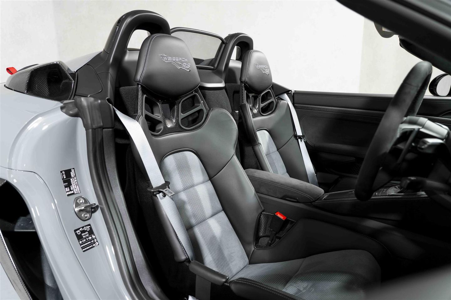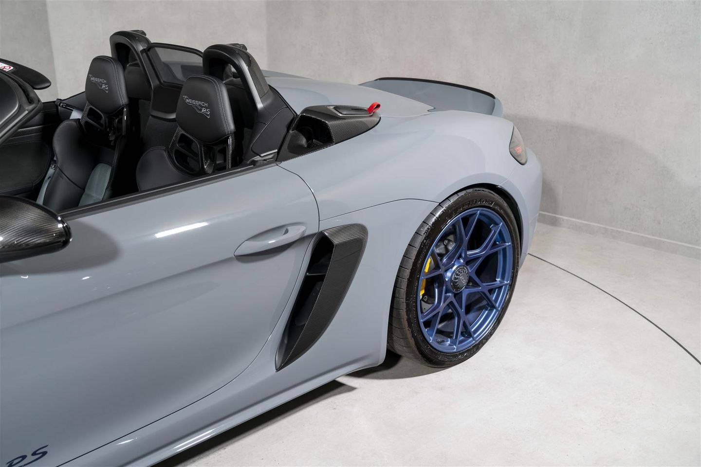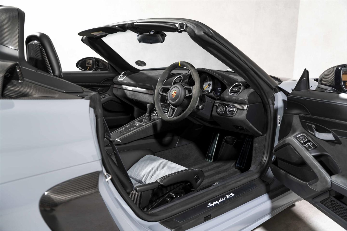 Presented here, in Arctic Grey Paintwork over a subtle yet striking Black Leather and Grey Microfibre Interior. To compliment the paint, the Indigo Blue 718 GT4 RS Wheels and Indigo Blue decals round off the car perfectly. Equipped with the all important Weissach package, which gives you a Carbon Fibre Bonnet with Partial Painting, Exterior Mirror Upper Trims, Cooling Air Intake Trim Behind Driver and Passenger Door, Process Air Intakes, Housing to Upper Brake Light, Trim for Roll over bar and Gurney Flap located on the rear spoiler. Plus, Titanium Tailpipes and 'Weissach Package' Embossed on the convertible roof. Moving onto the interior, the Upper Part of Dashboard in Race-Te, 'Weissach Package' badge on the Cup Holder and finally 'Weissach Package' Logo Embossed into the Headrests.