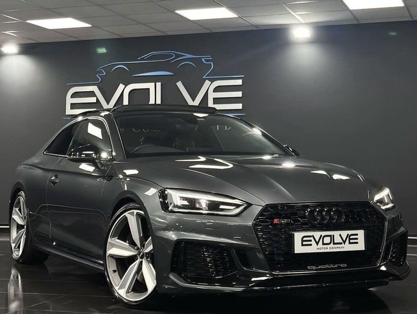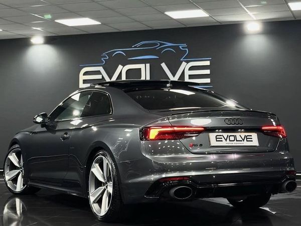 Leather-Alcantara - RS Super Sports with Pneumatic Massage Function - Black with Rock Grey Honeycomb Contrast Stitching, Daytona Grey, Comfort and Sound Package, 20in Alloy Wheels - 5-Arm Peak Design Gloss Milled Aluminium in Anthracite Matt Black, 6-Airbag System, ABS - Anti-Lock Braking System, Anti Theft Locking Wheel Bolts, Anti-Theft Alarm, Audi Connect Infotainment Services - 36 Month Trial, Audi Connect Safety and Service, Audi Phone Box with Wireless Charging, Audi Side Assist, Audi Smartphone Interface, Audi Sound System, Audi Virtual Cockpit, Auto-Dimming Rear-View Mirror, Black Styling Package, Brake Calipers Painted in Black with RS 5 Logo at the Front, Cloth Headlining in Black, DAB Digital Radio Reception, Deluxe 3-Zone Electronic Climate Control, Door Handles - Body Coloured, Door Mirrors - Electrically Folding - Adjustable and Heated with Integrated LED Side Indicators and Kerb-view Function for Passenger Side, Door Sill Trims - Illuminated with RS5 Logo, Electric Windows - Front, Electrically Adjustable Front Seats, Electromechanical Power Steering, First Aid Kit and Warning Triangle, Flat-Bottomed High Multi-function 3-Spoke Leather Sport Steering Wheel with RS Badging, Front Centre Armrest, Front and Rear Floor Mats, High-Beam Assist, Hill Hold Assist, Inlays - Piano Finish - Black, LED Headlights with RS Air Intake, LED Interior Light Package, Leather Door Armrests and Knee Pad, Light and Rain Sensor, MMI Navigation Plus including MMI Touch, Multi Collision Brake Assist, Panoramic Glass Sunroof, Pedals in Stainless Steel, Pneumatic Massage Function, Pop-Up Bonnet for Pedestrian Protection, Pre-Sense City, Privacy Glass with Rear Acoustic Glazing, RS Audi Drive Select, RS Body Styling, RS Dual-branch Chrome Tailpipes with Large Oval Pipes Each on Left and Right, RS Model Enhanced Braking System, RS Sports Exhaust System, RS Sports Suspension, RS-Specific Gear Lever Knob in Perforated Leather with Contrast Stitching, RS5 Badges on Grille - Front Wing Panels and Rear, Remote Control Key with RS Emblem, Seat Belt Monitoring, Split-Folding 2-Seater Rear Seat Bench in 3 Parts - 40-20-40 with Rear Centre Armrest, Tool Kit, Windscreen with Acoustic Glazing, quattro with Sports Differential
